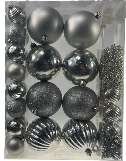 Med det sølvfarvede pyntsæt opnår du et elegant, glitrende udtryk, der understreger julens magi og skaber en hyggelig højtidelig stemning i enhver indretning.