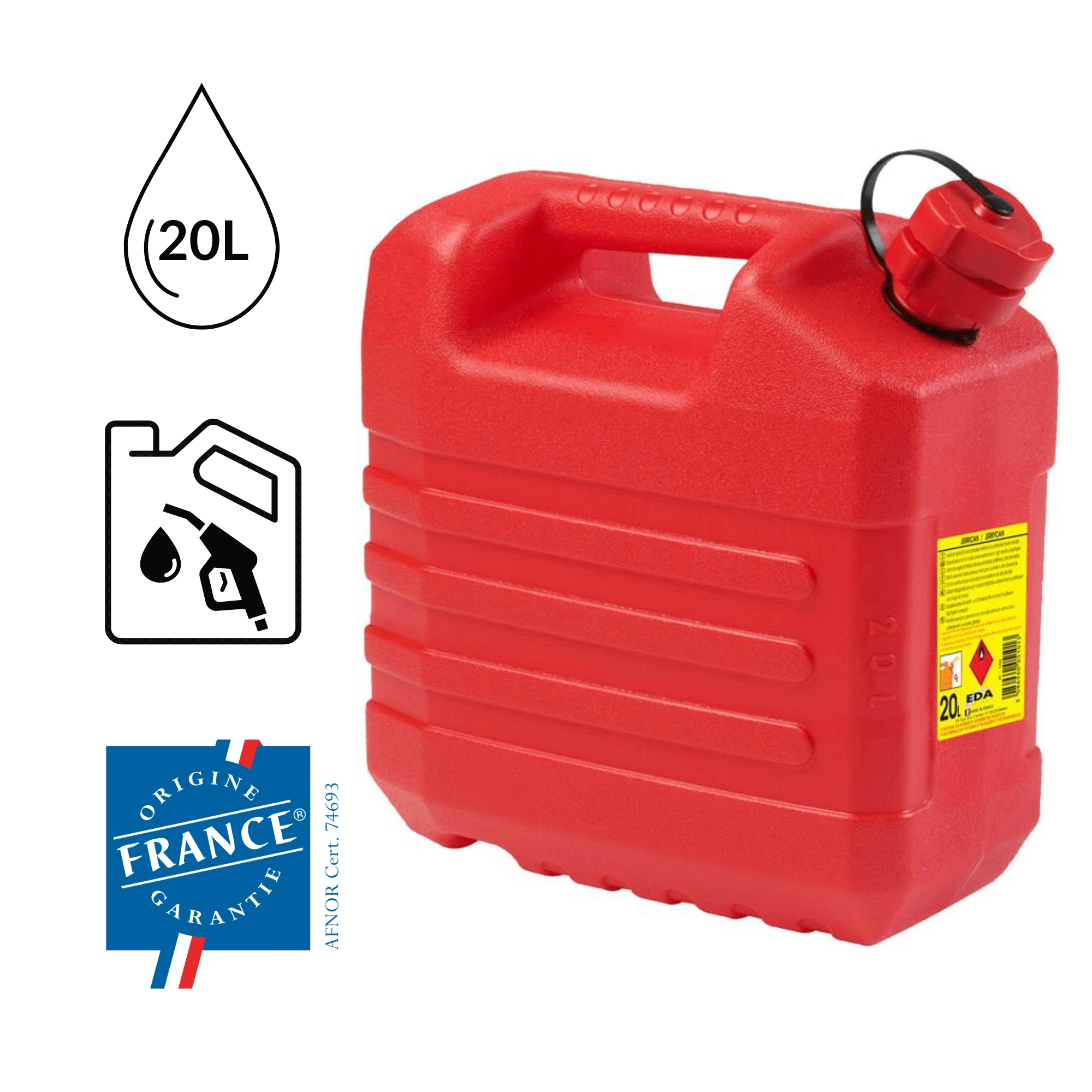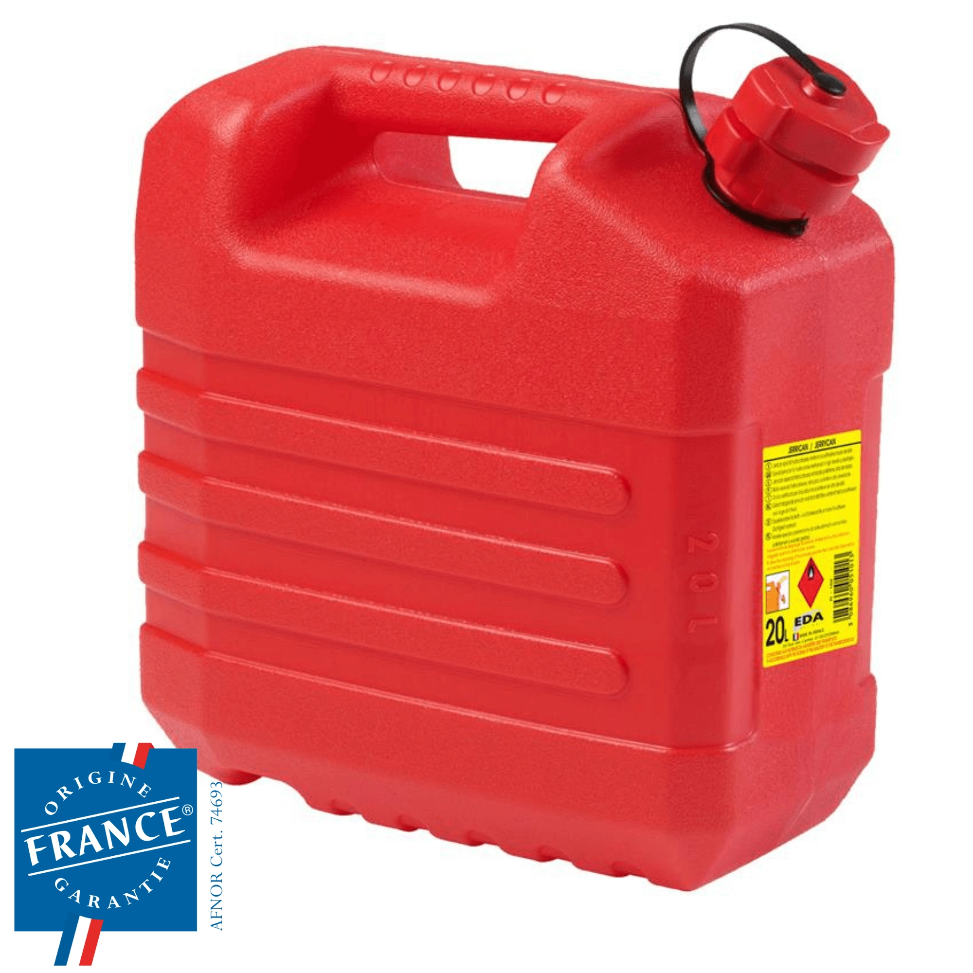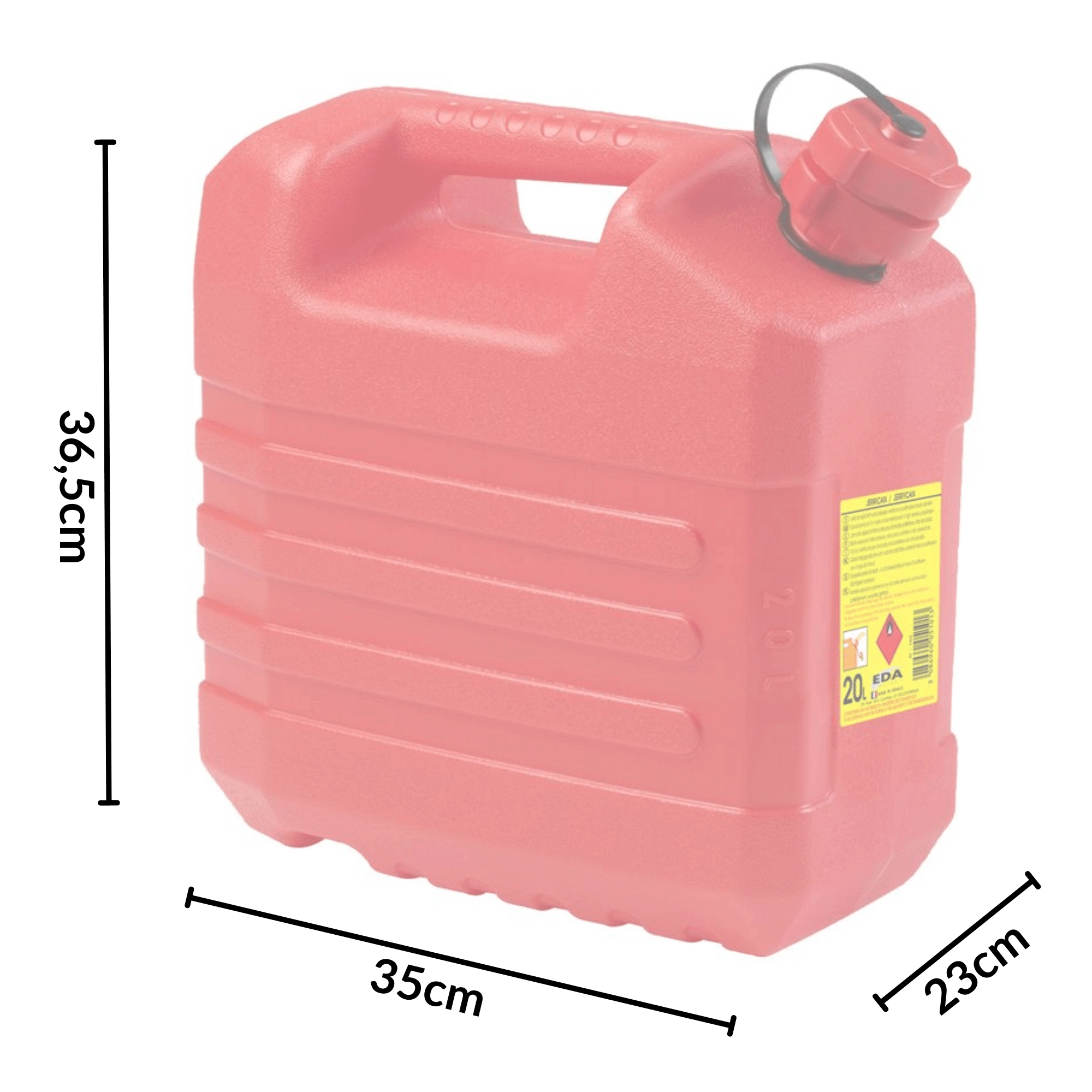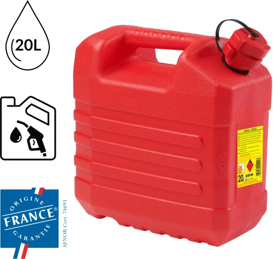 Den robuste plastkonstruktion i PP er let, slagfast og velegnet til sikker opbevaring af både benzin og diesel.