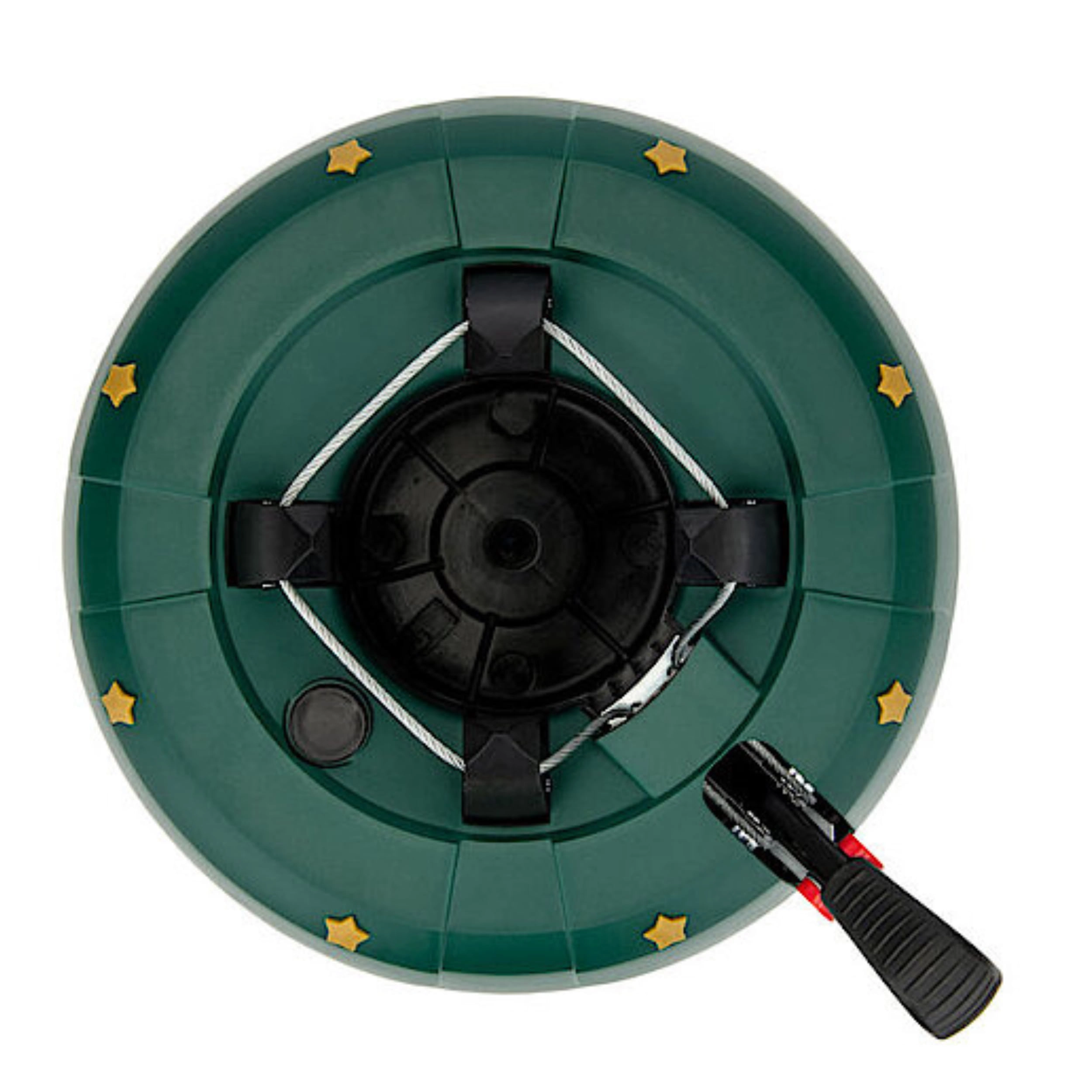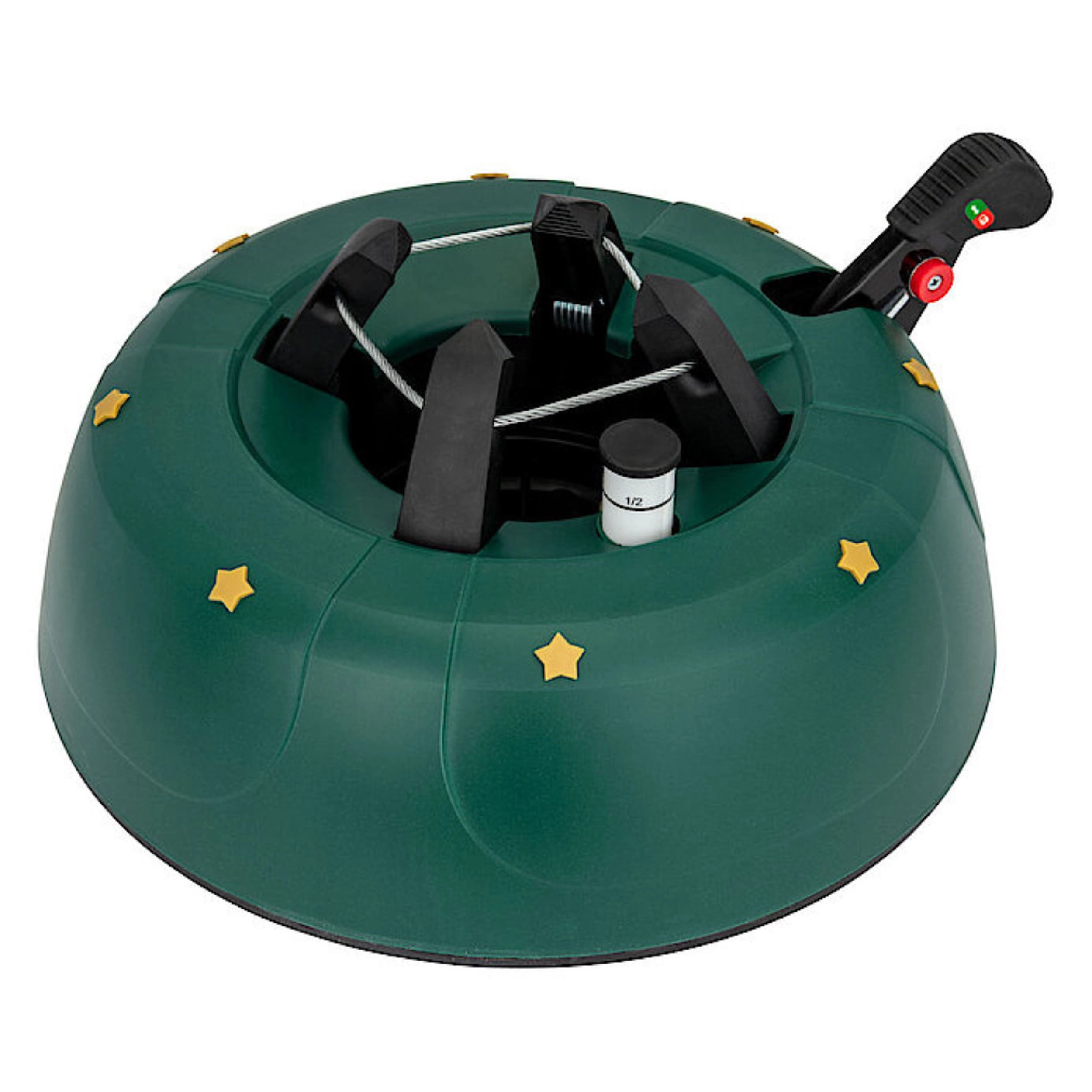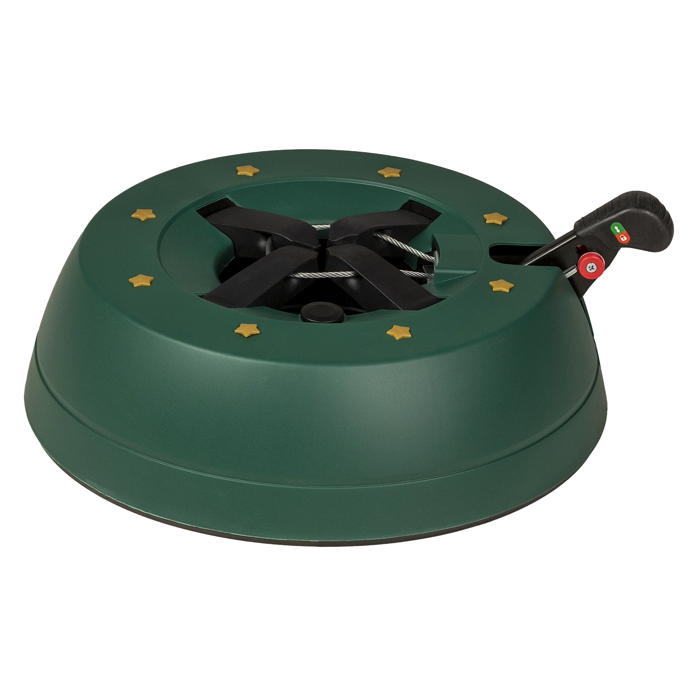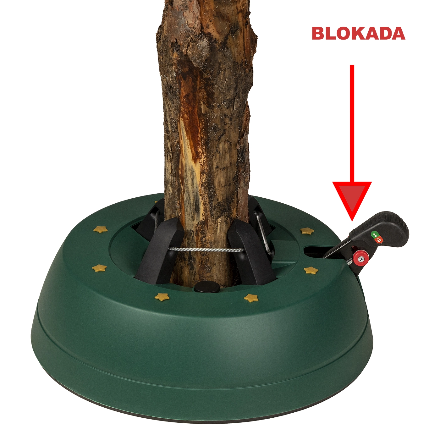 Det dekorative grønne design med gyldne stjerner passer til julepynten, og de robuste materialer (PP-korpus, ABS-kæber) tåler daglig brug. Takket være nem montering og armsikring mod utilsigtet frigørelse er foden ideel til lejligheder, huse, hoteller, kirker og butikker. Velegnet til populære arter som gran, ædelgran og fyr.