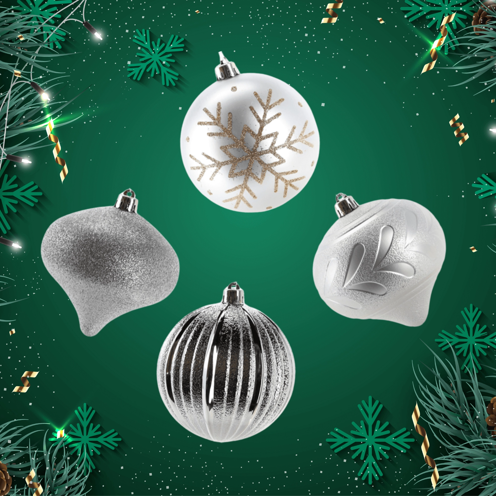 Ornamenterne er fremstillet af kvalitetsplast, som er let og mindre skrøbelig end glas – ideelt til familier med børn og kæledyr.
