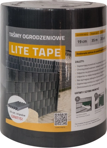 Det grafitfarvede hegnsbånd i størrelsen 19 cm x 35 m er en elegant og funktionel løsning til panelhegn. Det giver din grund et moderne udseende, øger privatlivet og forbedrer beskyttelsen mod vind og støv. Takket være det robuste PVC-materiale med høj vægt beholder det formen og farven i lang tid.