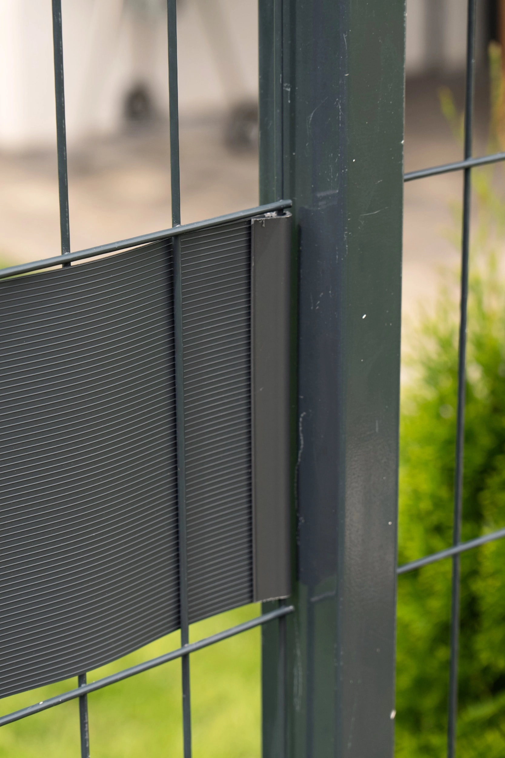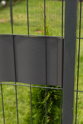 Protecto COMPACT er en smart løsning til hurtig montering af privatliv på 2D/3D panelhegn, altaner eller rækværk. Hvert bånd skal blot flettets ind mellem trådene – uden specialværktøj, uden hjælper og uden afskær. Grafitfarven RAL 7016 og CLASSIC-strukturen giver hegnet et elegant, ensartet udseende.