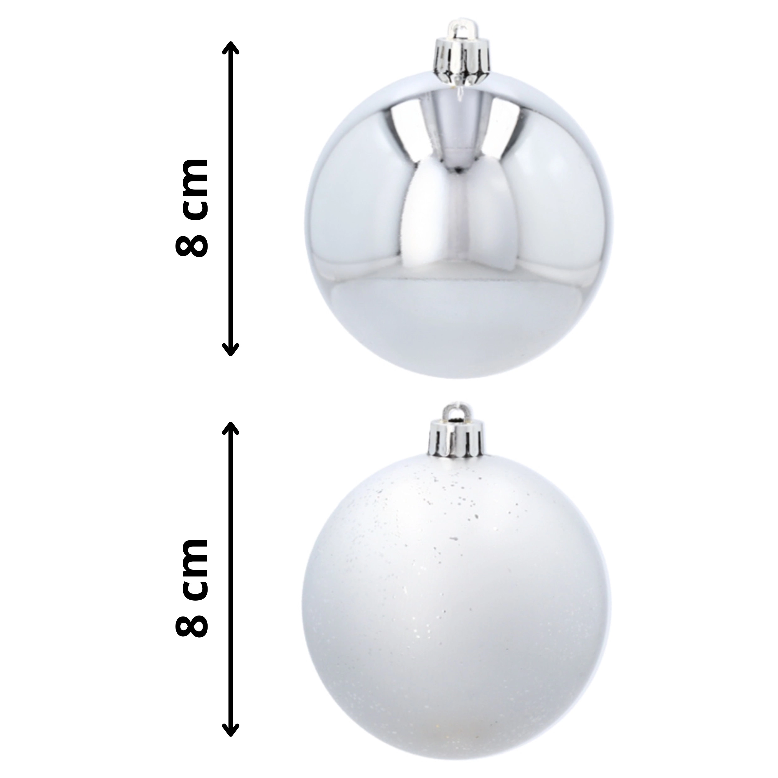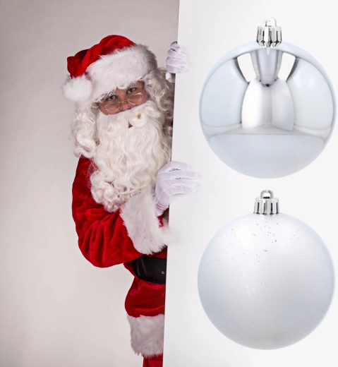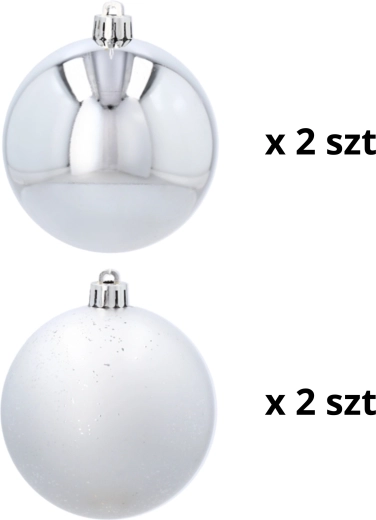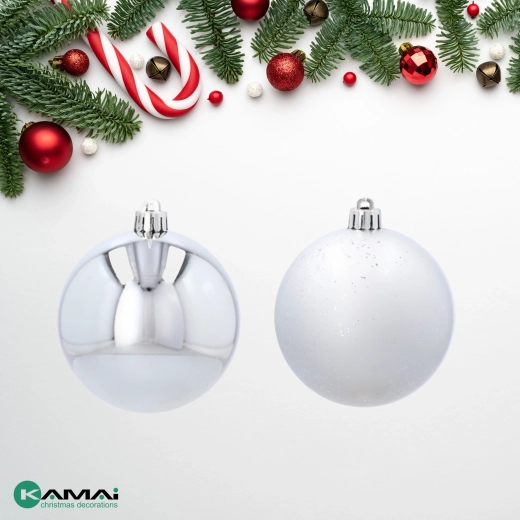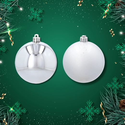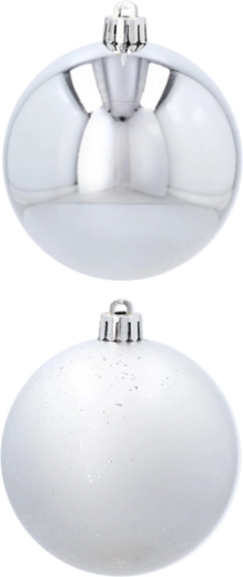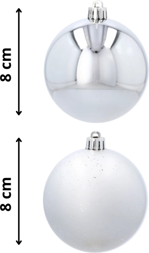 Elegante sølvfarvede ornamenter giver dit hjem et moderne skær og en rolig, højtidelig stemning. Kombinationen af glans og let struktureret overflade skaber en harmonisk kontrast, der tager sig flot ud på enhver juletræ eller i arrangementer.