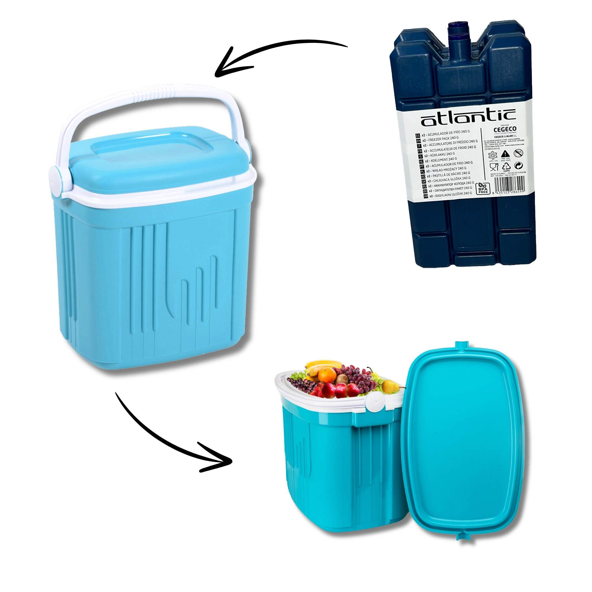 Sættet KAMAI ATLANTIC 2×240 ml er det ideelle valg til udflugter, indkøb og daglig brug på arbejdet. Frys elementerne og læg dem i køleboksen eller termotasken – de kompakte mål passer perfekt i de fleste almindelige modeller. Den robuste udførelse og tætte lukning sikrer maksimal tæthed uden risiko for lækage.