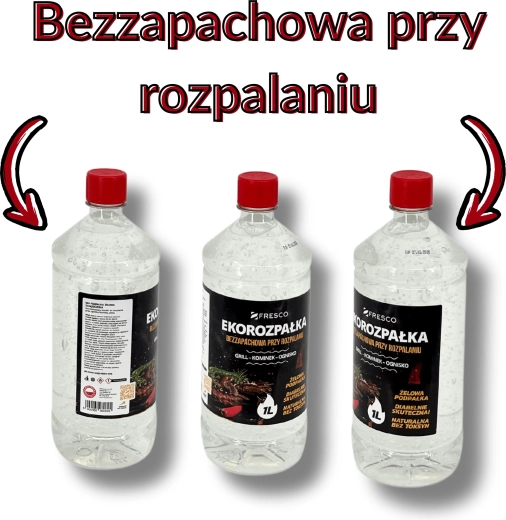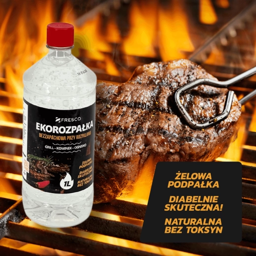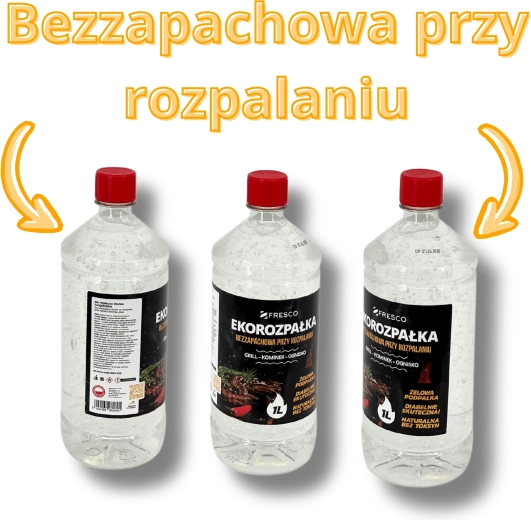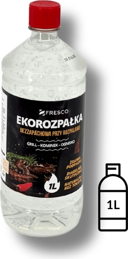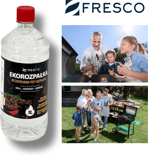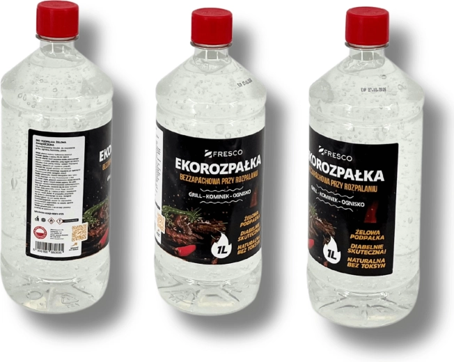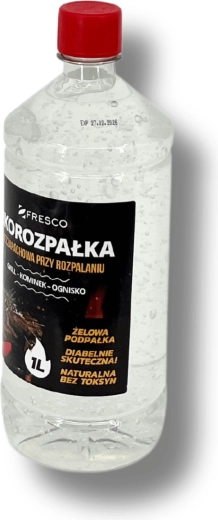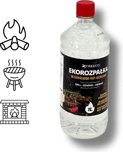 Praktisk og sikker miljøvenlig gel-optænding FRESCO med et volumen på 1 l til nem antænding af grill, pejs og bålplads. Den er helt uden lugt, uden giftige tilsætningsstoffer og opfylder standarden PN‑EN 1860-3. Lang holdbarhed på 5 år og farveløs konsistens for bekvem og effektiv brug.