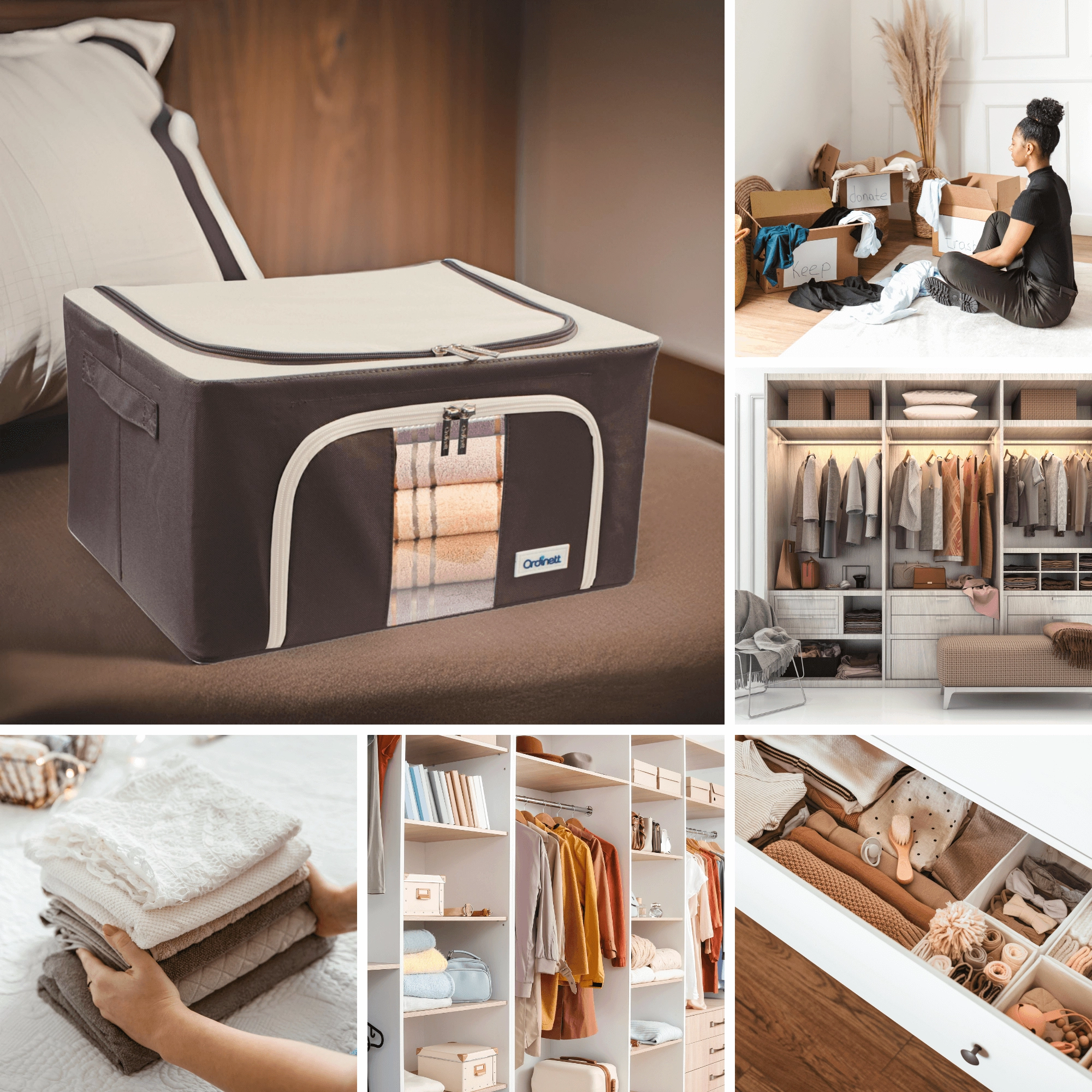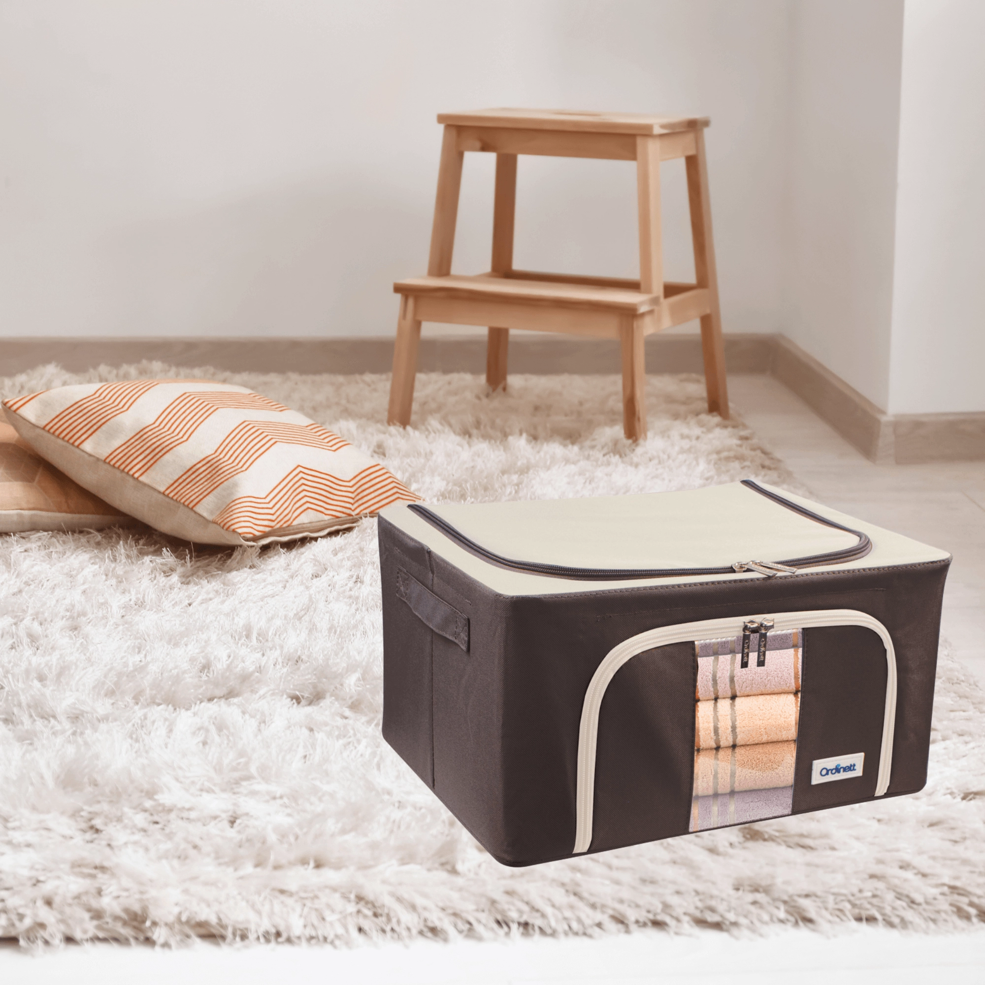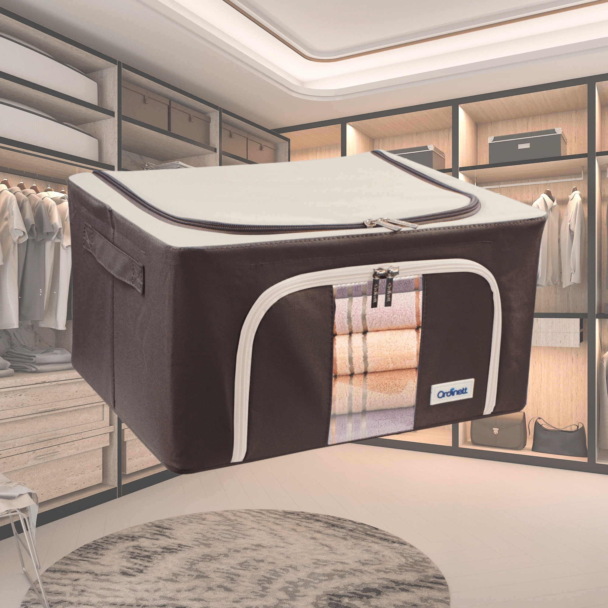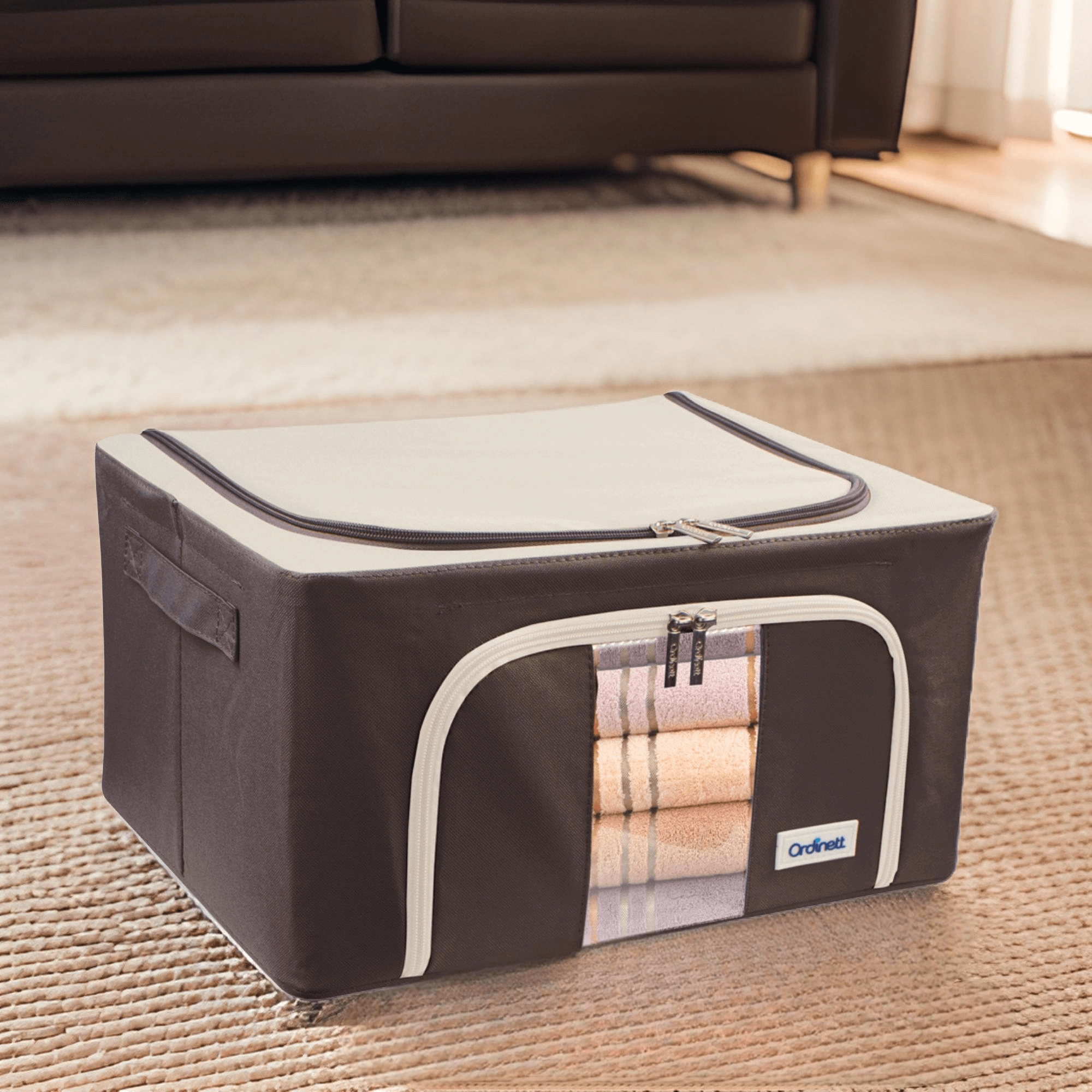 Du vil også sætte pris på dobbelt åbning – øverste og forreste lynlås – for hurtig adgang både fra hylden og under sengen. Sidehåndtag gør håndtering og transport nemmere. Det tidløse farvedesign passer til garderobe, soveværelse, stue og børneværelse.