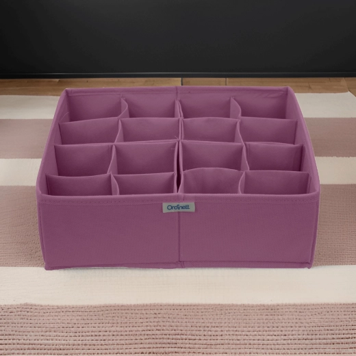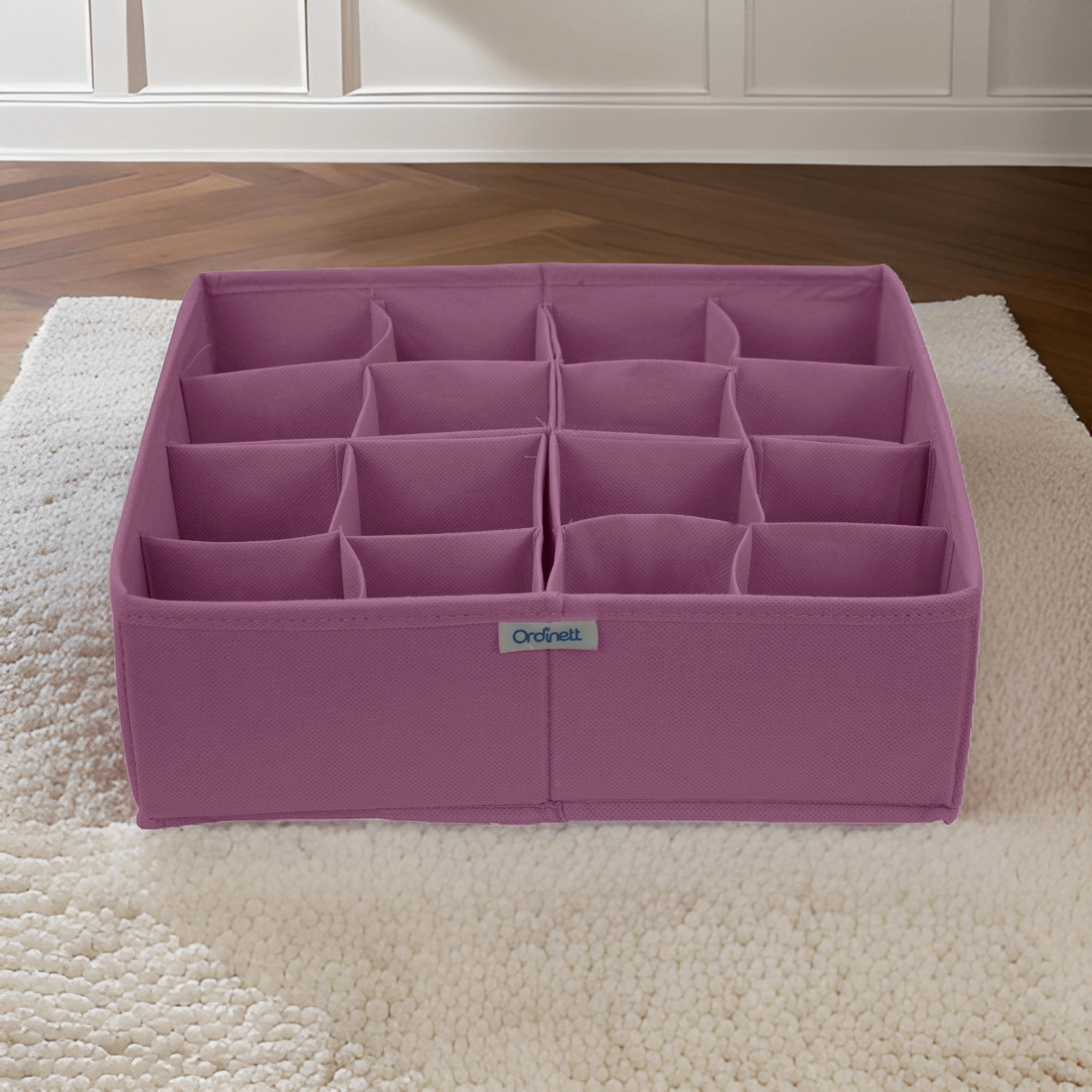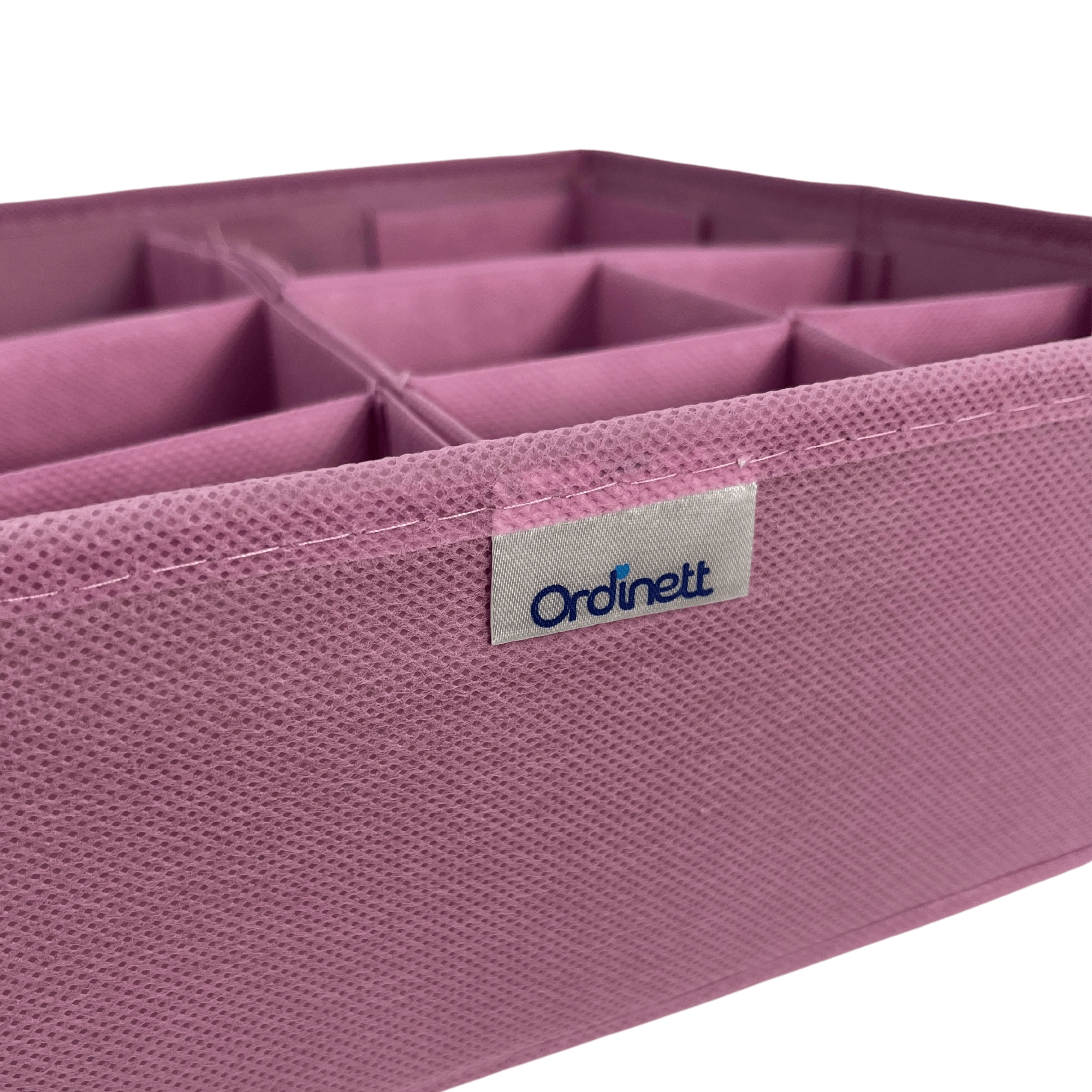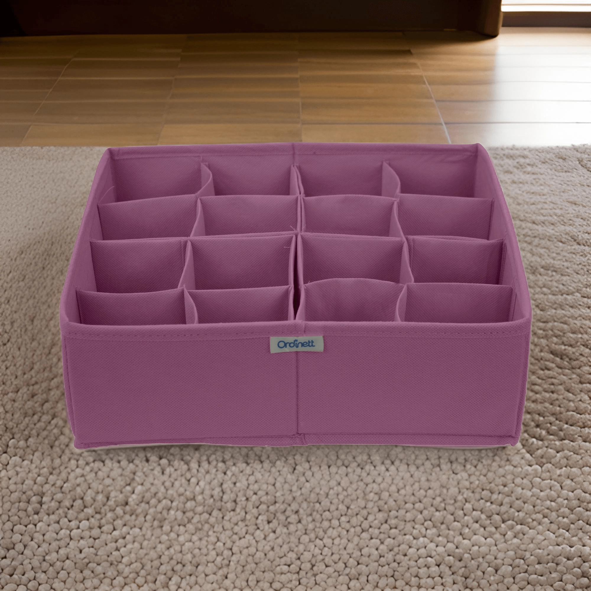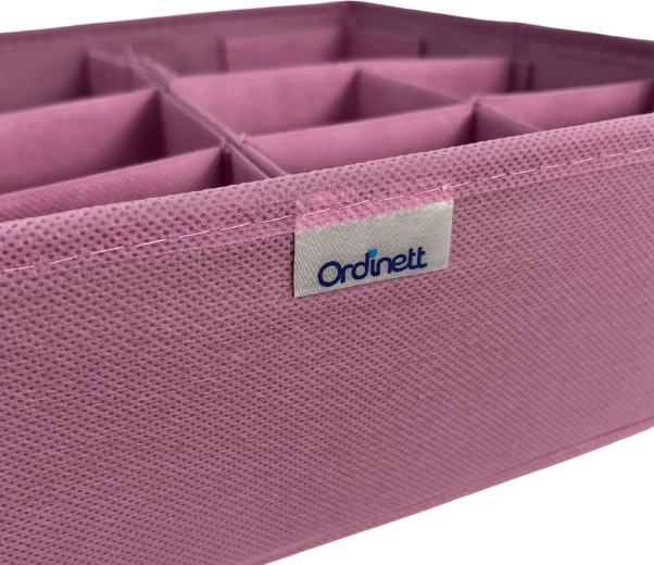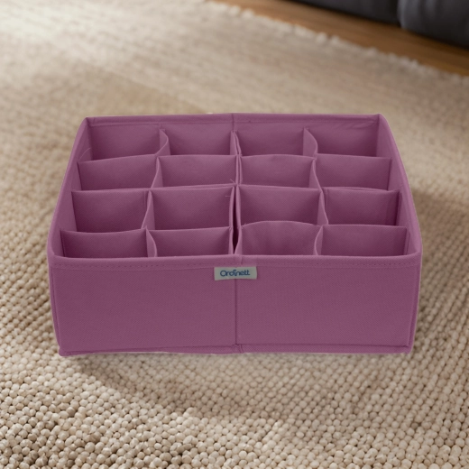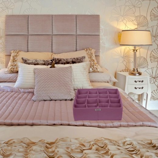Få styr på dine skuffer én gang for alle. Tekstilorganizeren BLOSSOM tilbyder 16 rum til overskuelig opbevaring af strømper, undertøj, tilbehør og kosmetik. Den har et kompakt kvadratisk format 30,5 × 30,5 × 10 cm, er sammenklappelig, let og lavet af slidstærkt non-woven tekstil i elegant rosa.