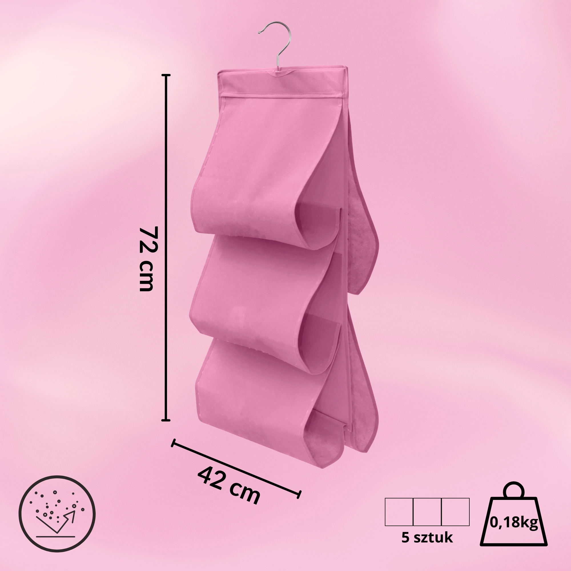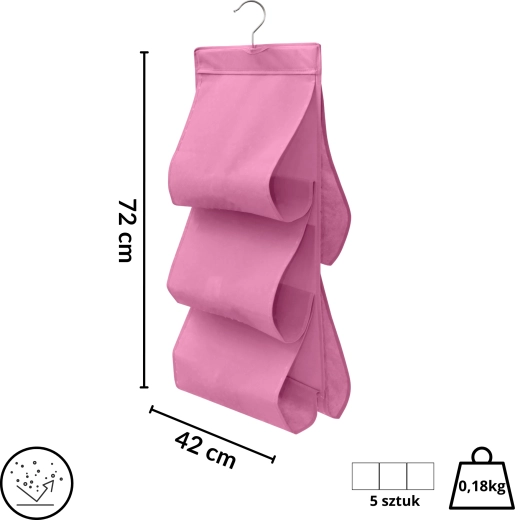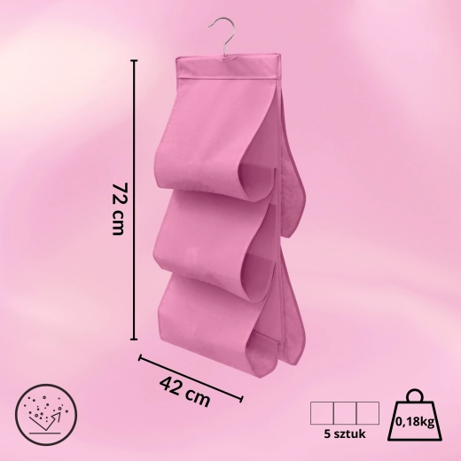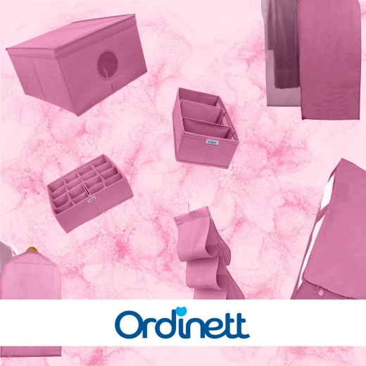Det holdbare ikke-vævede tekstil (polyester) er let, åndbart og nemt at vedligeholde. Den lyserøde udførelse tilfører garderobens interiør et friskt pust og skaber overblik i hverdagen.