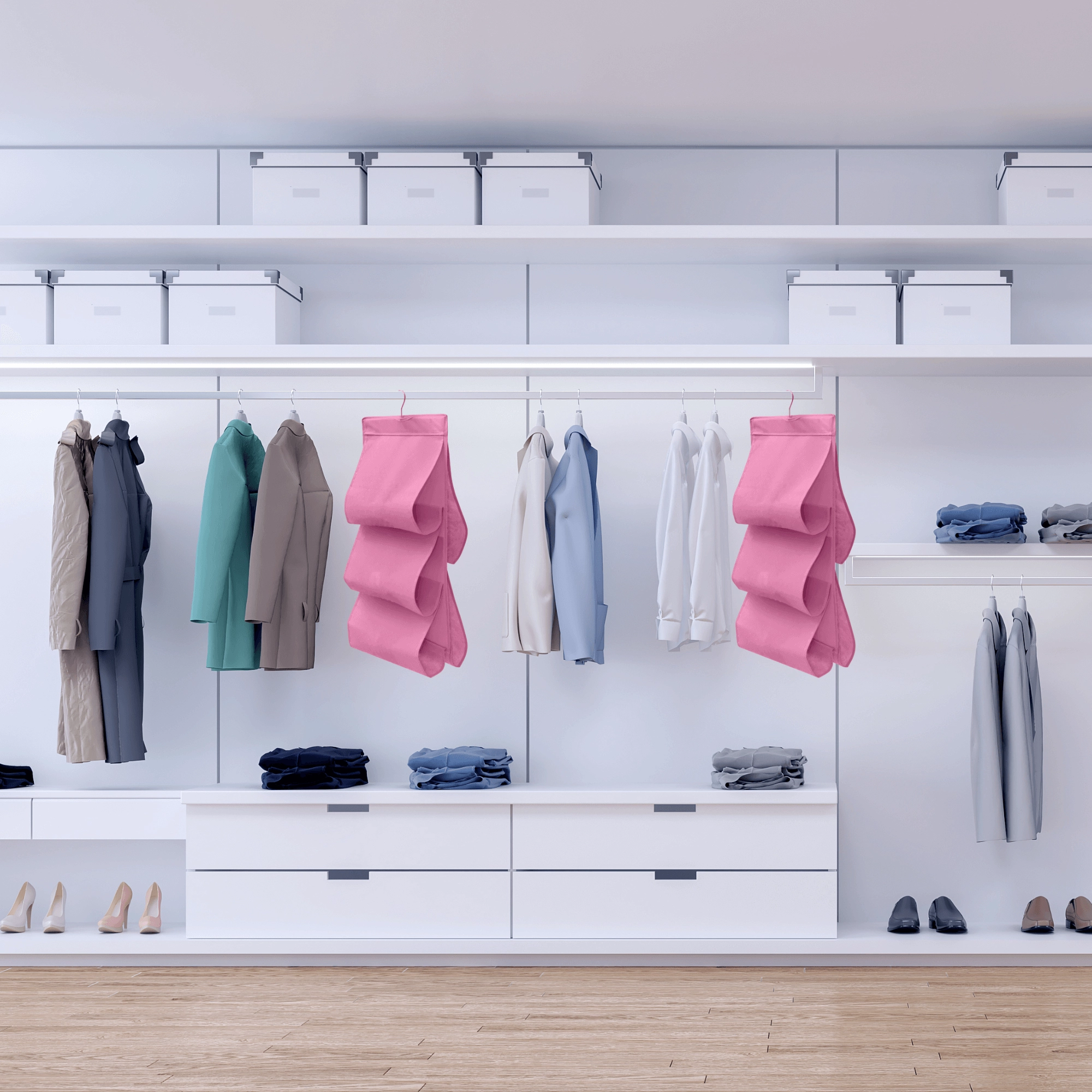 Opbevar komfortabelt tasker, tørklæder, bælter og mindre tøjdele. Hver lomme holder formen og sikrer nem adgang.