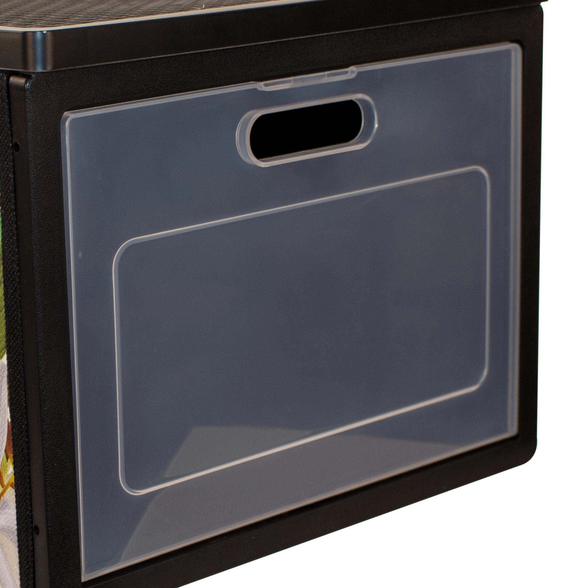 Skab overblik i garderoben med den dekorative FLORAL-organizer. De forreste gennemsigtige låger giver øjeblikkelig kontrol over indholdet og nem udtagning uden at skulle flytte boksen. To praktiske sidehåndtag gør den let at bære, mens den faste bund sikrer stabilitet og form.