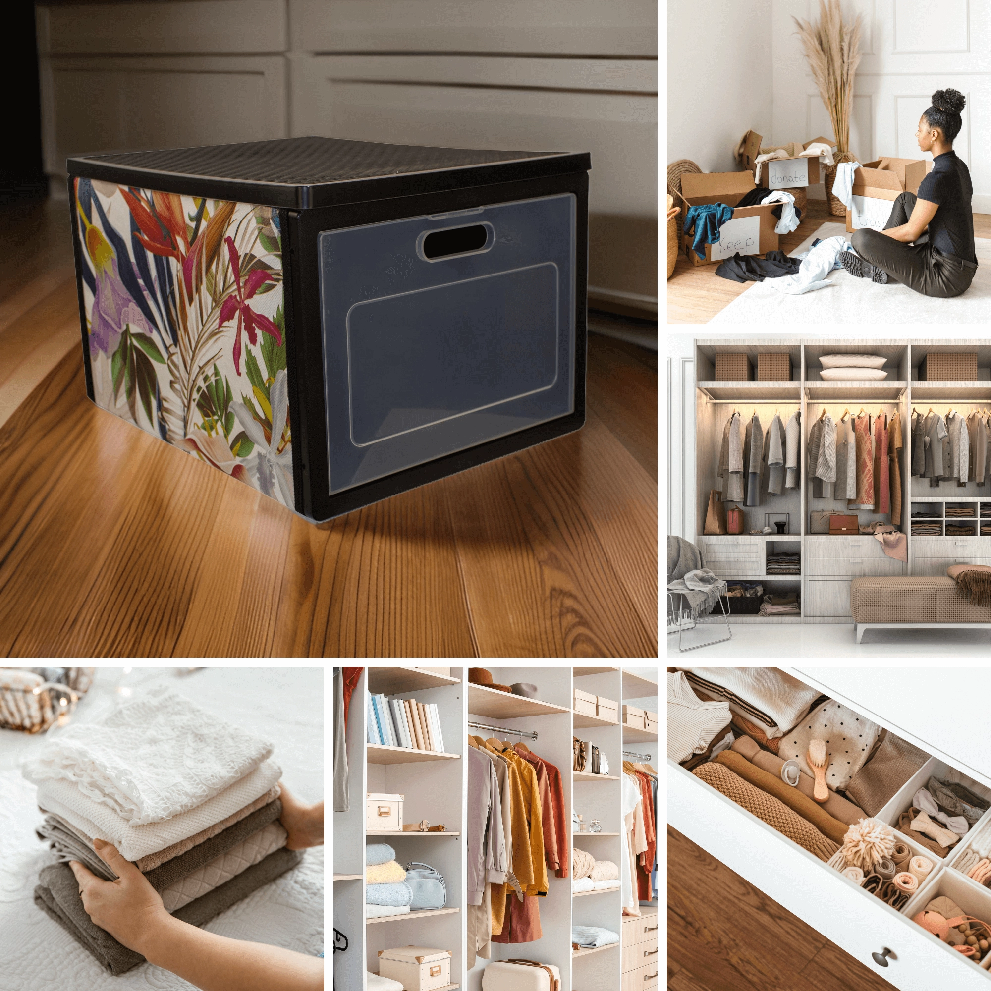 Kombinér flere FLORAL-bokse og skab et overskueligt system til organisering af tøj, accessories og sengetøj.