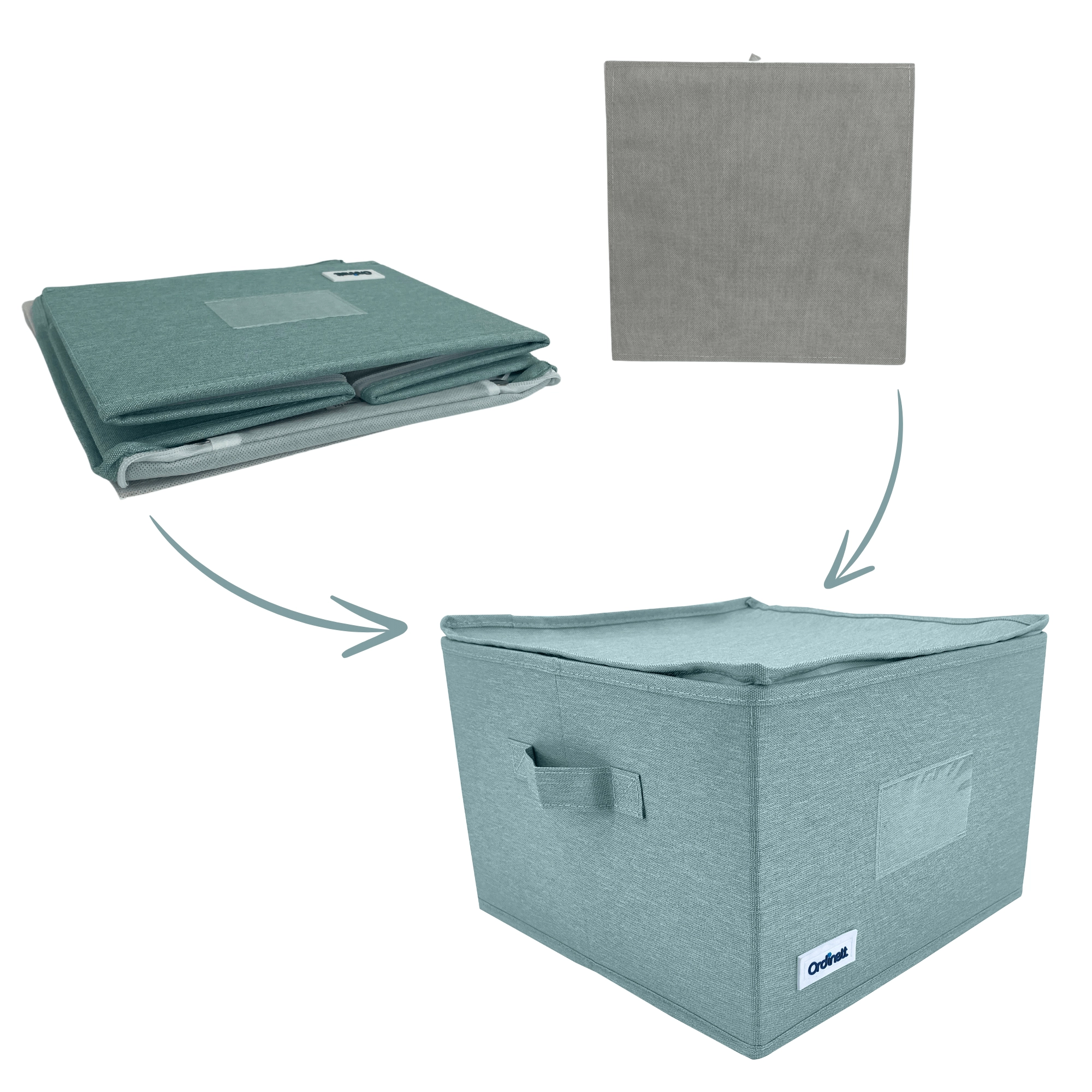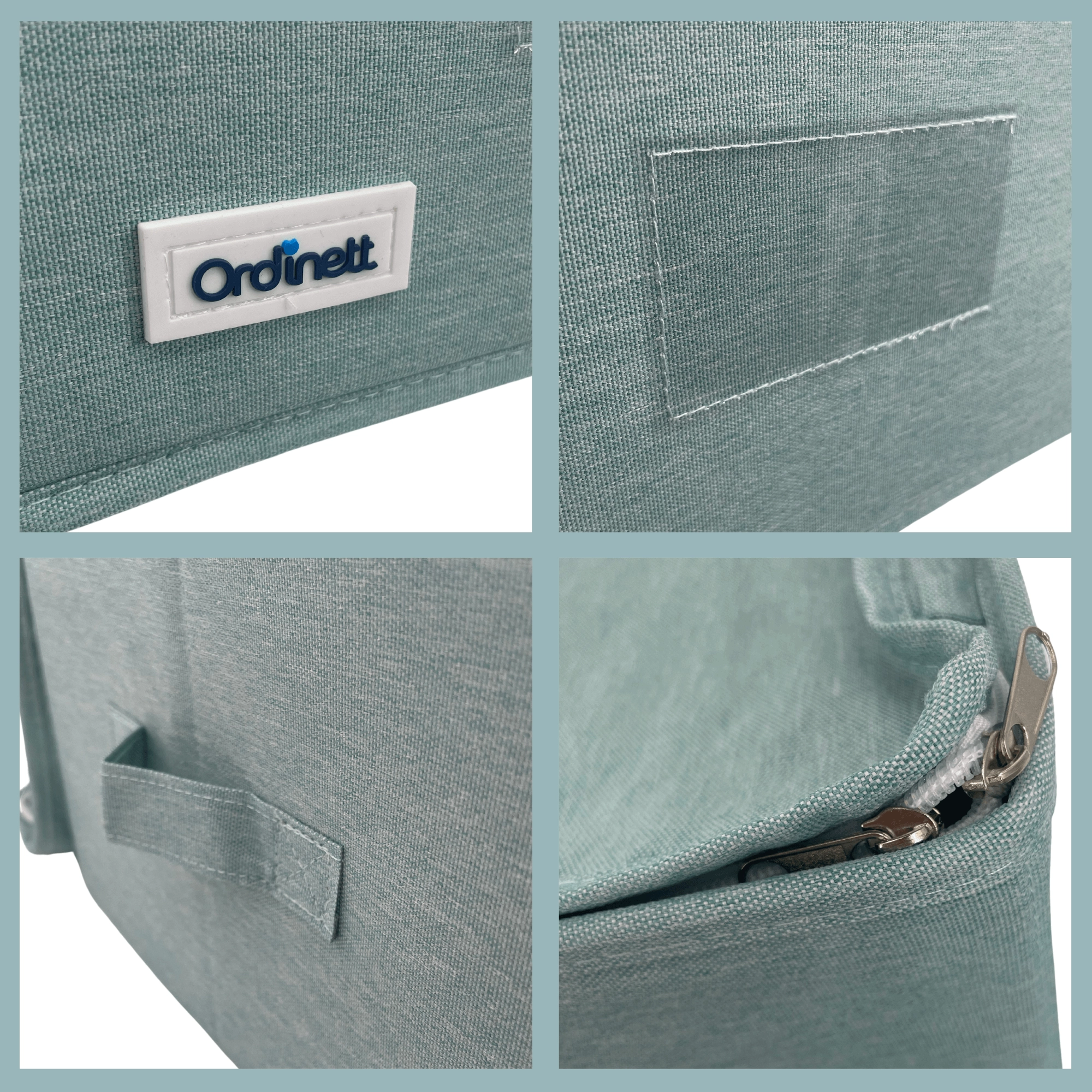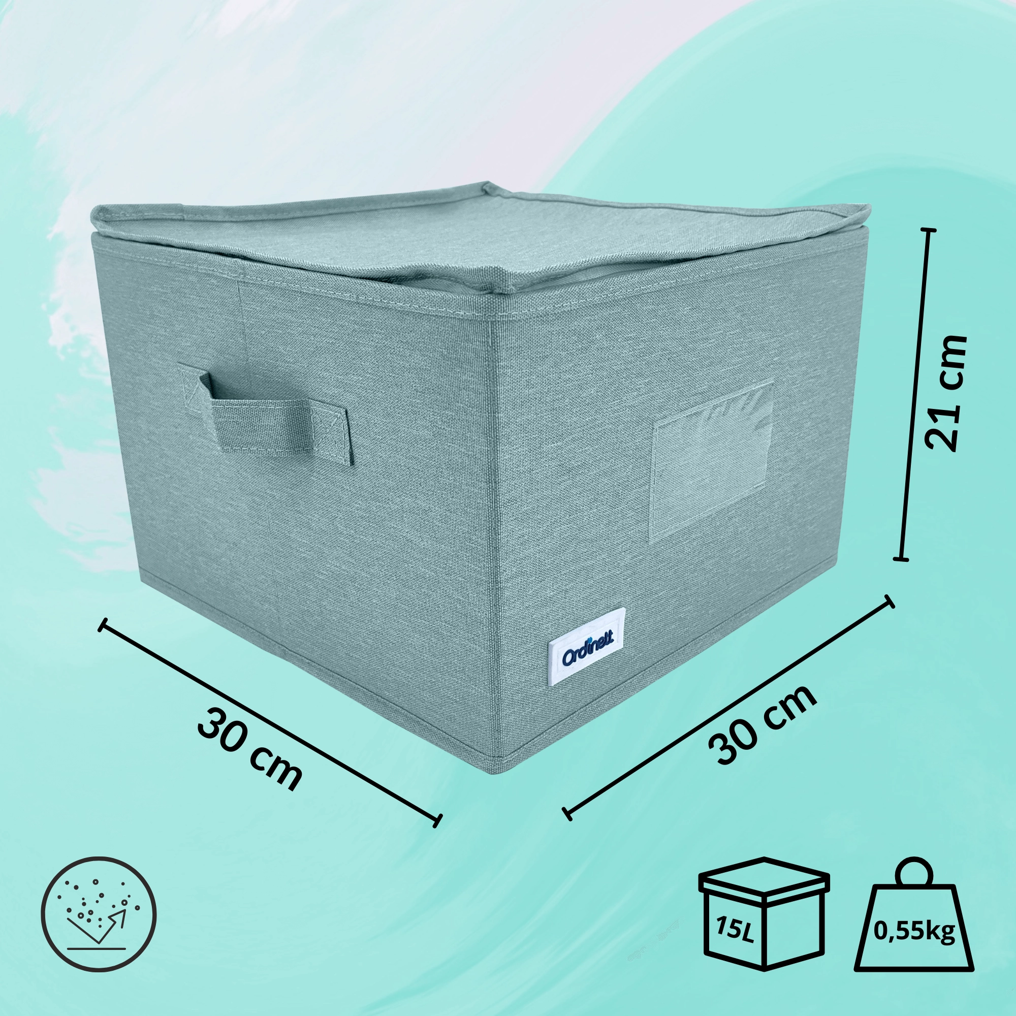 Hold orden derhjemme med stil. Denne tekstil-opbevaringsboks i målene 30 × 30 × 21 cm i en elegant mint farve har et solidt låg, sidehåndtag for nem transport og en sammenklappelig konstruktion, der sparer plads. Ideel til tøj, linned, legetøj, bøger og småting – dine ting forbliver overskueligt organiseret og beskyttet mod støv.