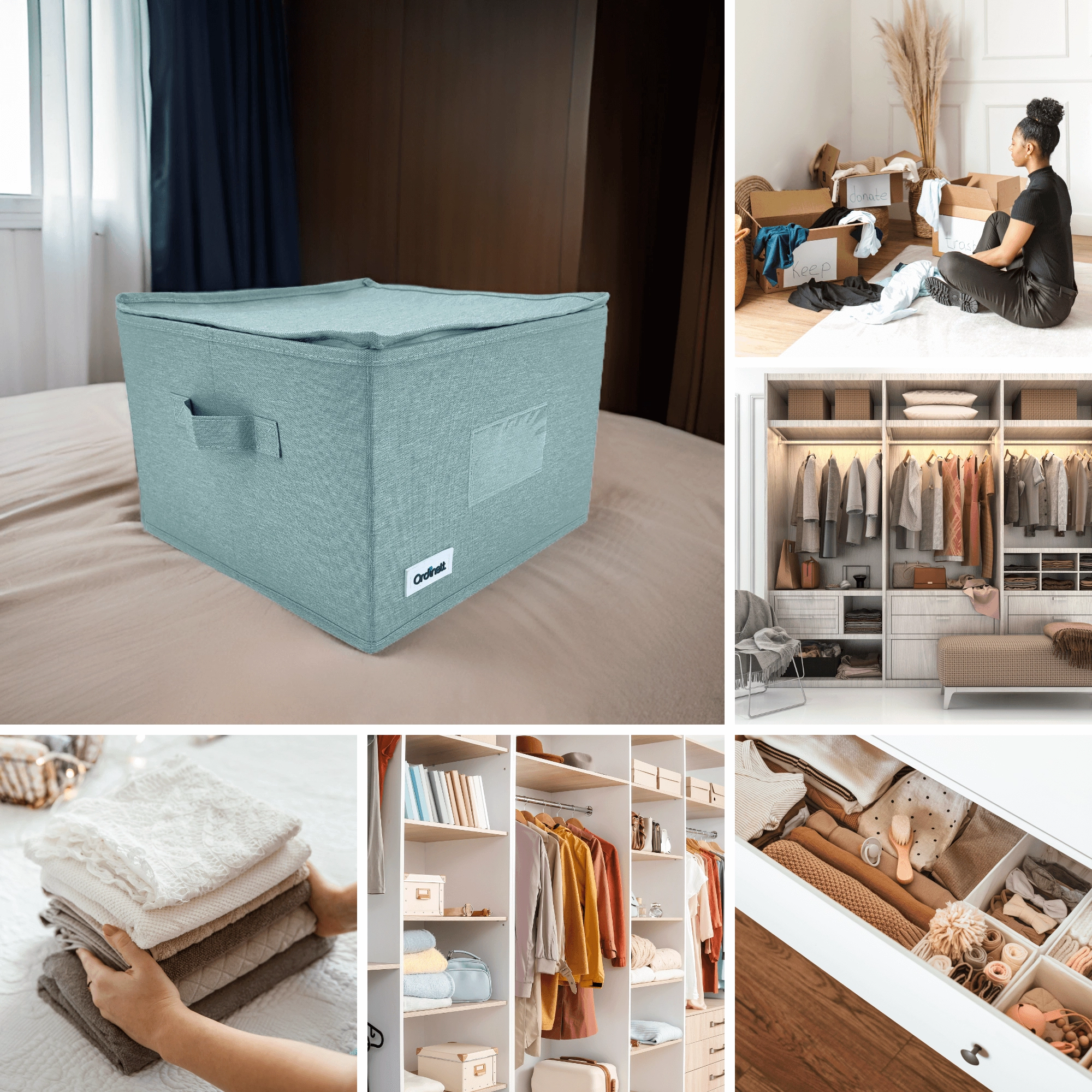Den praktiske tekstilorganisator til skabet forvandler rod til et overskueligt system. Takket være de mere robuste sider og låget bevarer den formen, sidegreb sikrer nem transport, og det sammenklappelige design gør det hurtigt at lægge boksen væk, når du ikke bruger den.