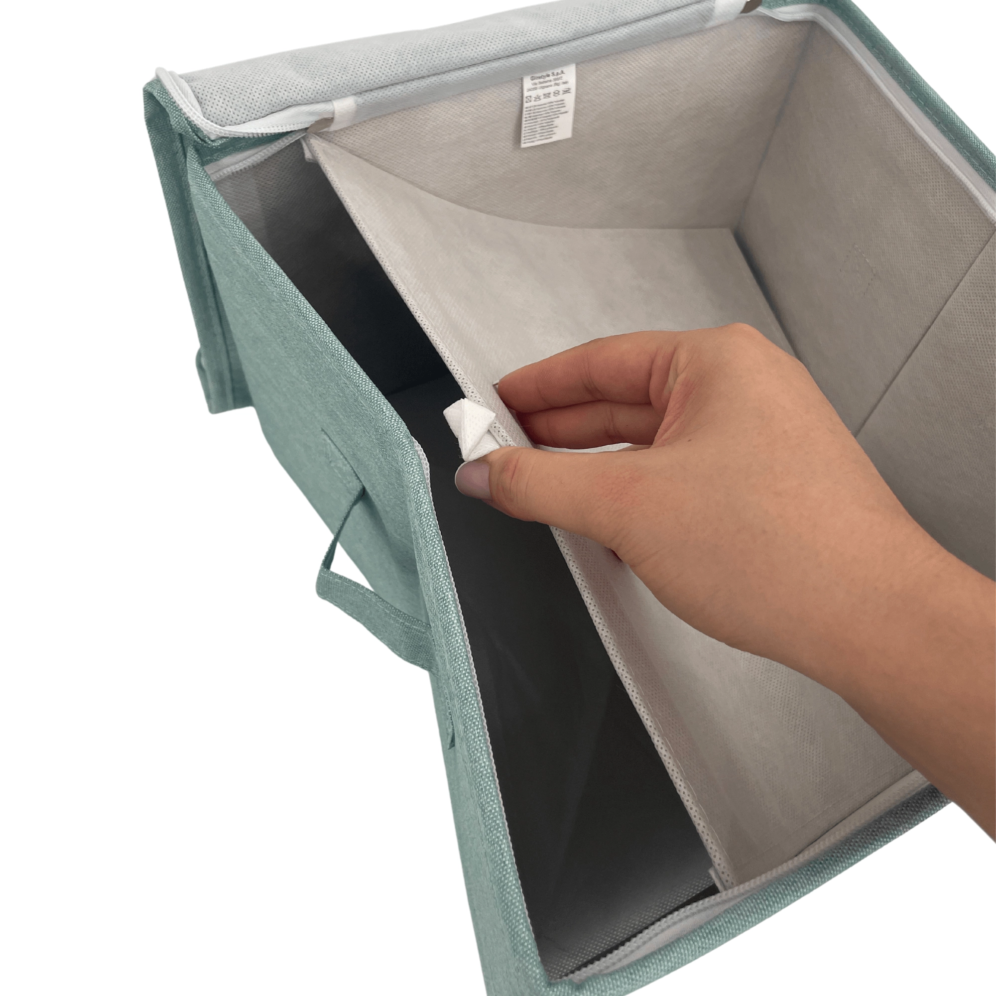 Den universelle størrelse 30 × 30 × 21 cm passer til hylder, reoler og garderobeskabe. Den blide mintnuance er let at matche med både moderne og klassisk interiør og understøtter et rent, ryddeligt udtryk i hjemmet.