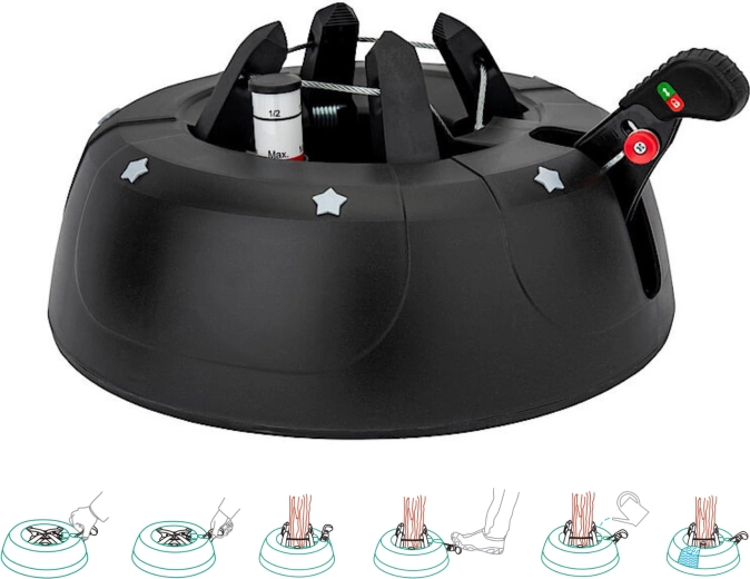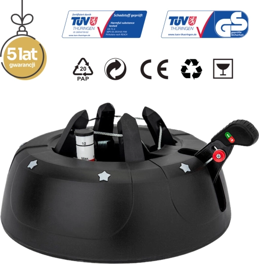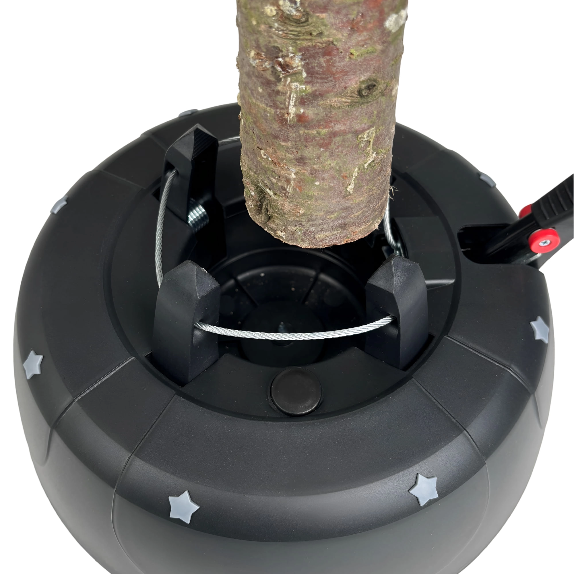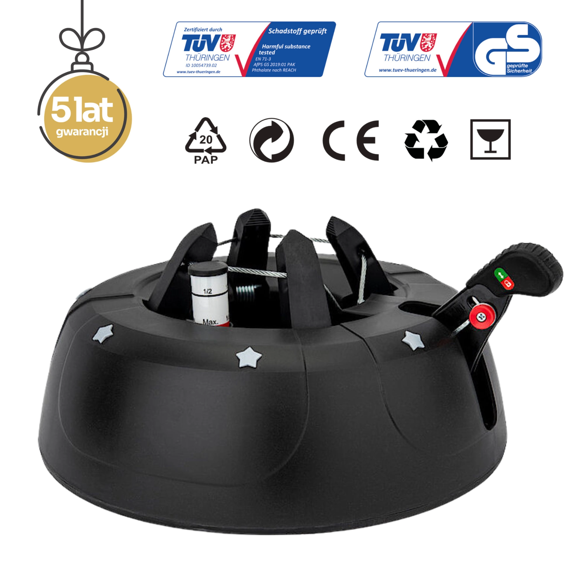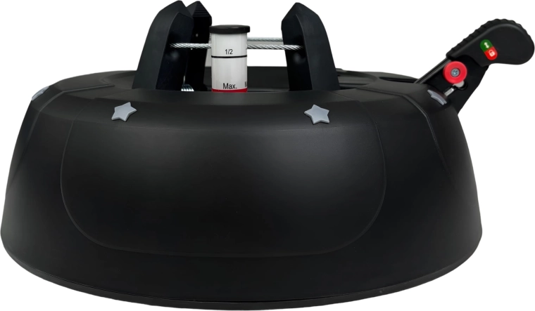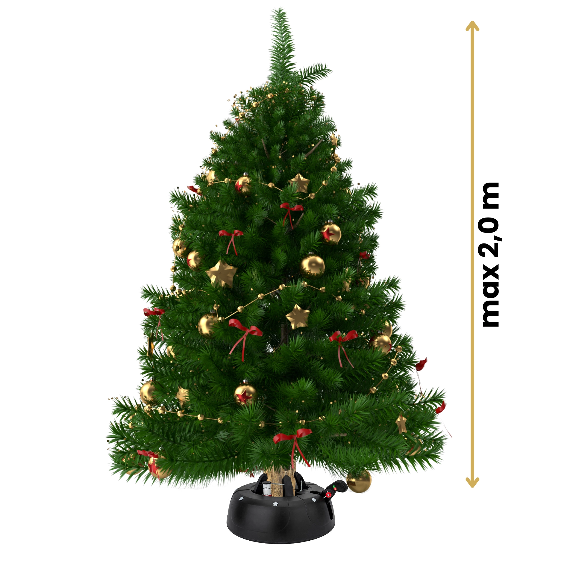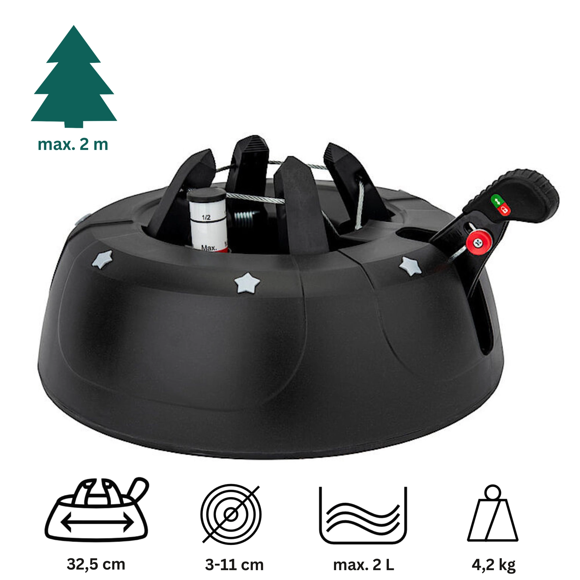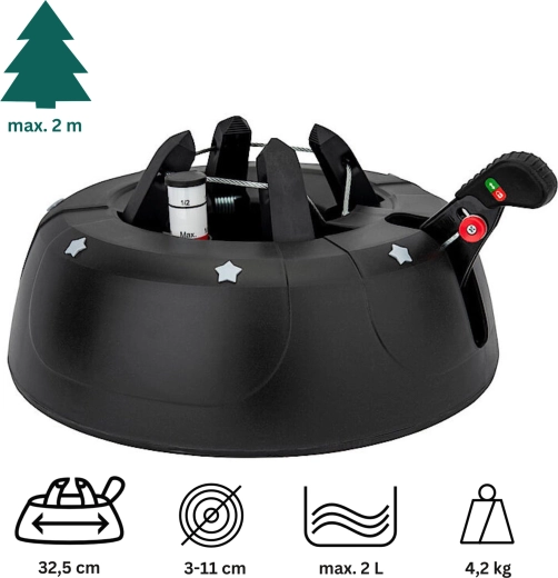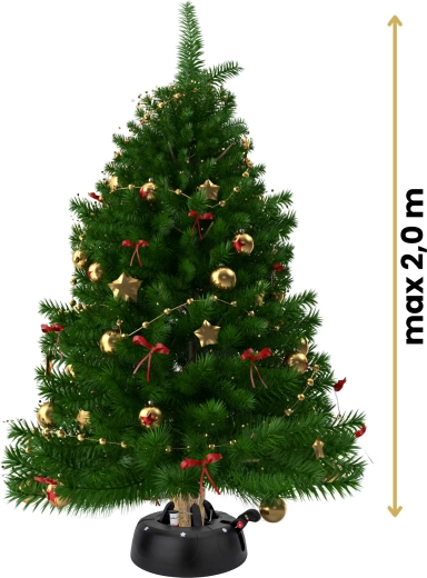 Den brede og tunge base (4,2 kg, diameter 34 cm) sikrer fast forankring af træet op til 2 m og komfortabel brug gennem hele højtiden.