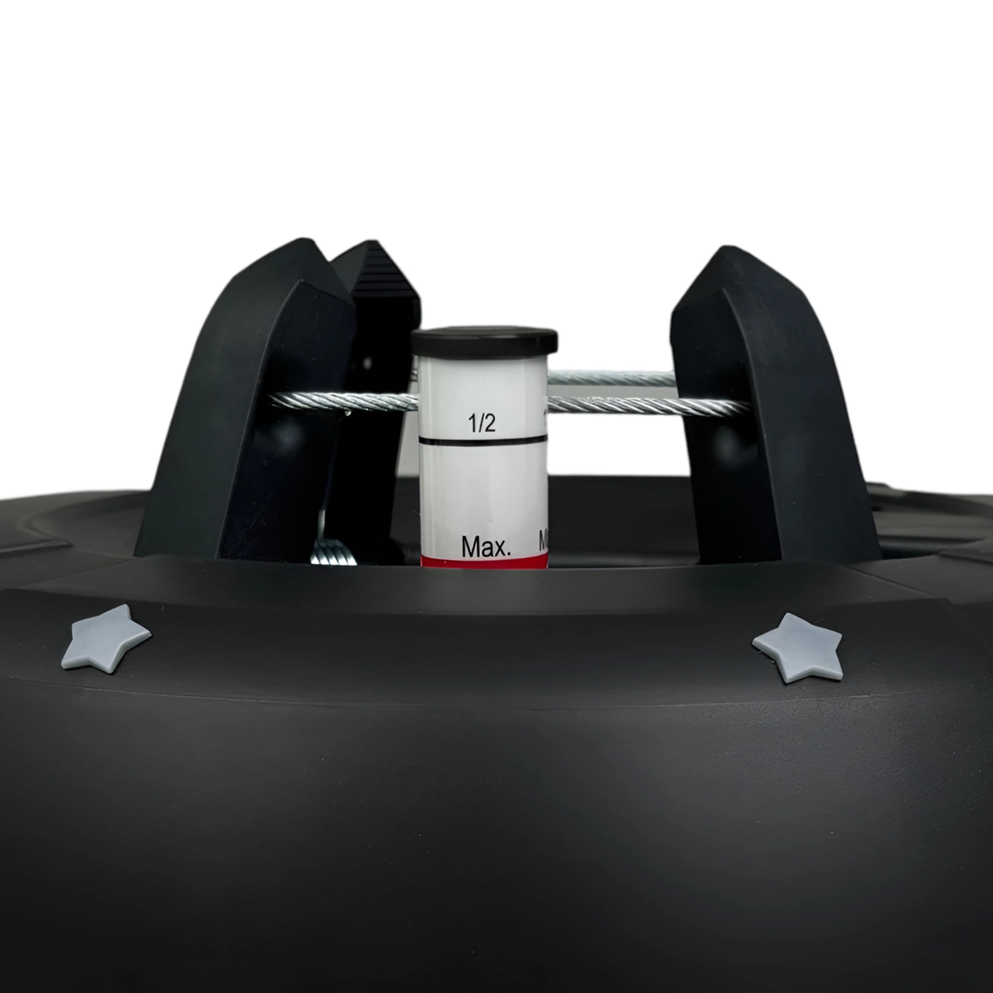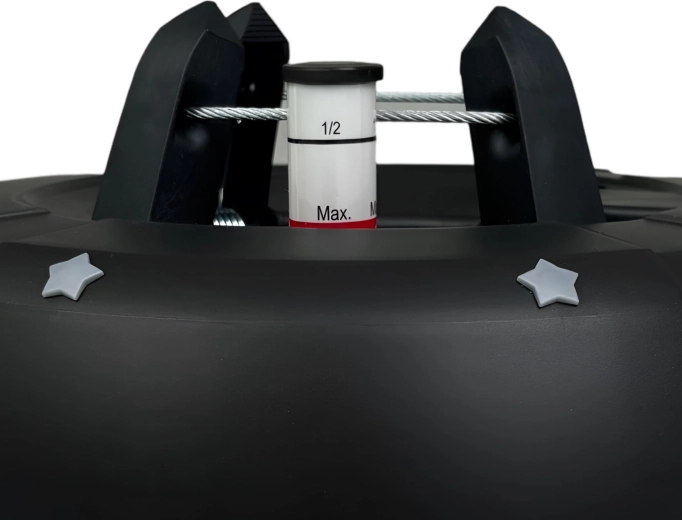 Den integrerede vandbeholder på 2 liter med niveauindikator hjælper med at holde træet hydreret og minimerer nålefald. Materialer af høj kvalitet PP og ABS garanterer lang levetid og nem vedligeholdelse. Den diskrete antracitfarve med dekorative stjerner giver din udsmykning et moderne udtryk.