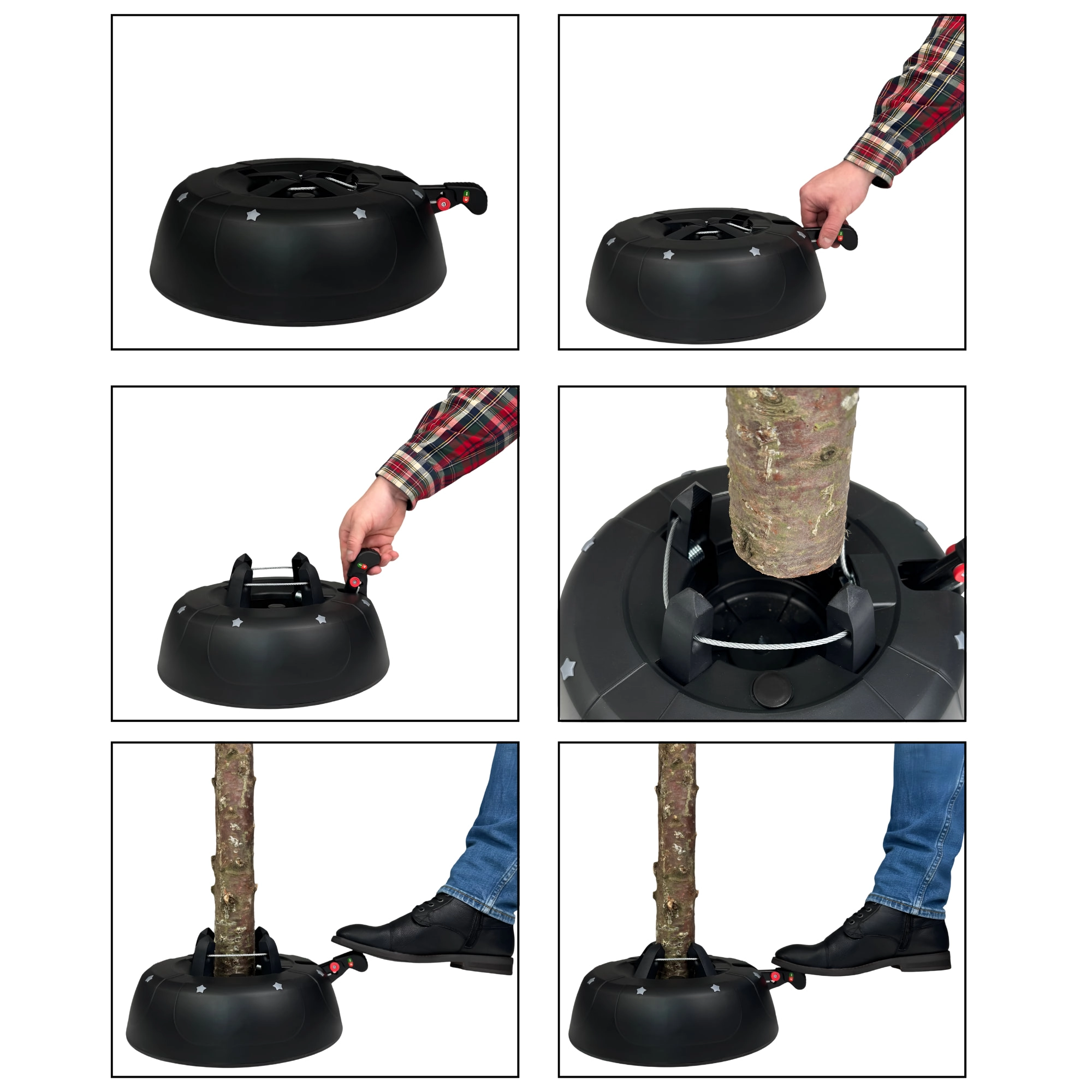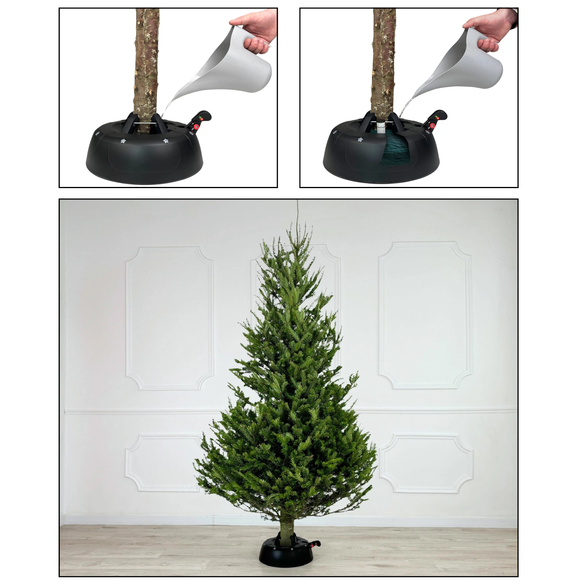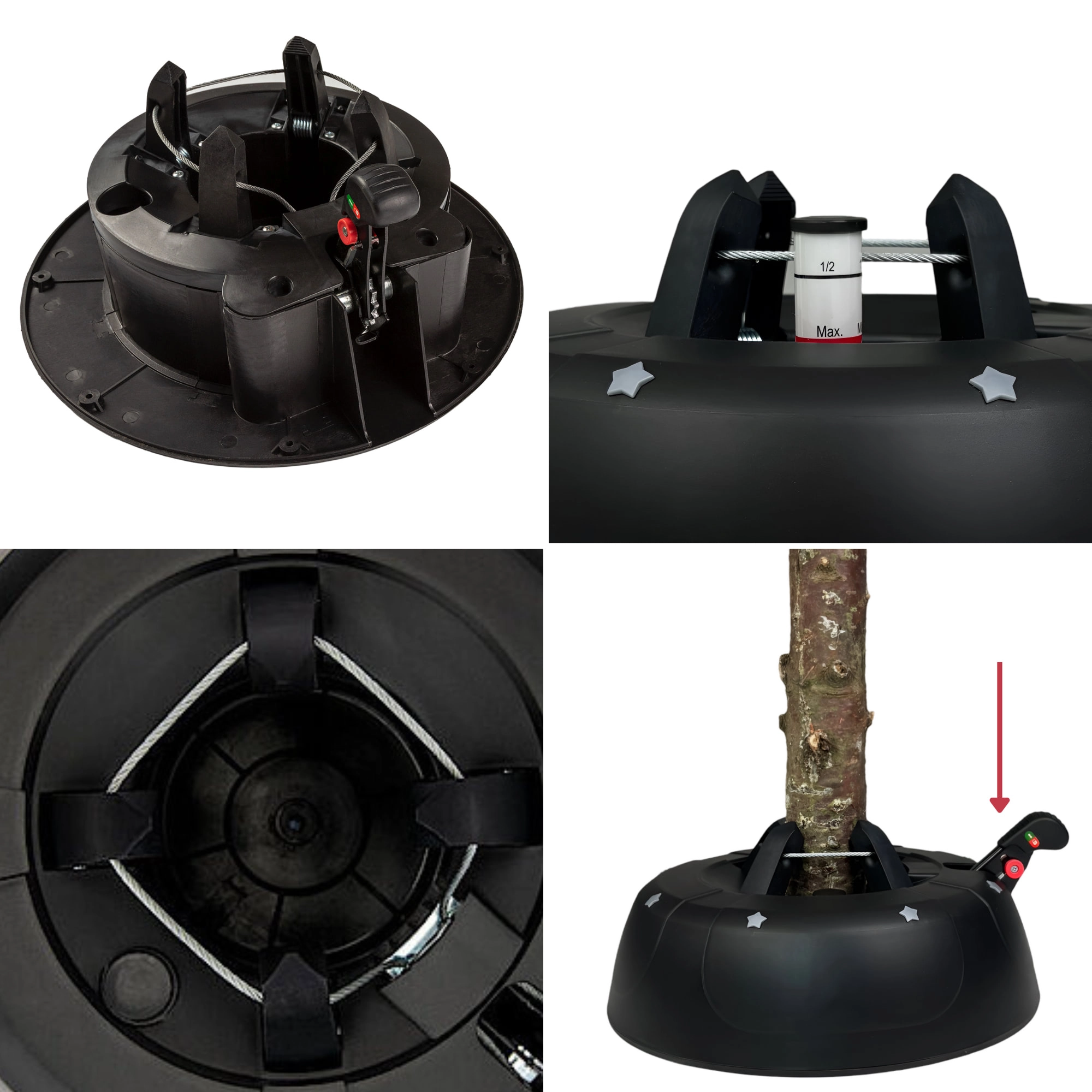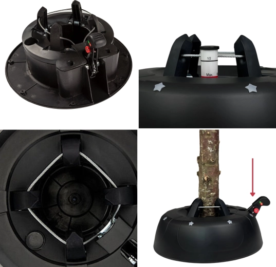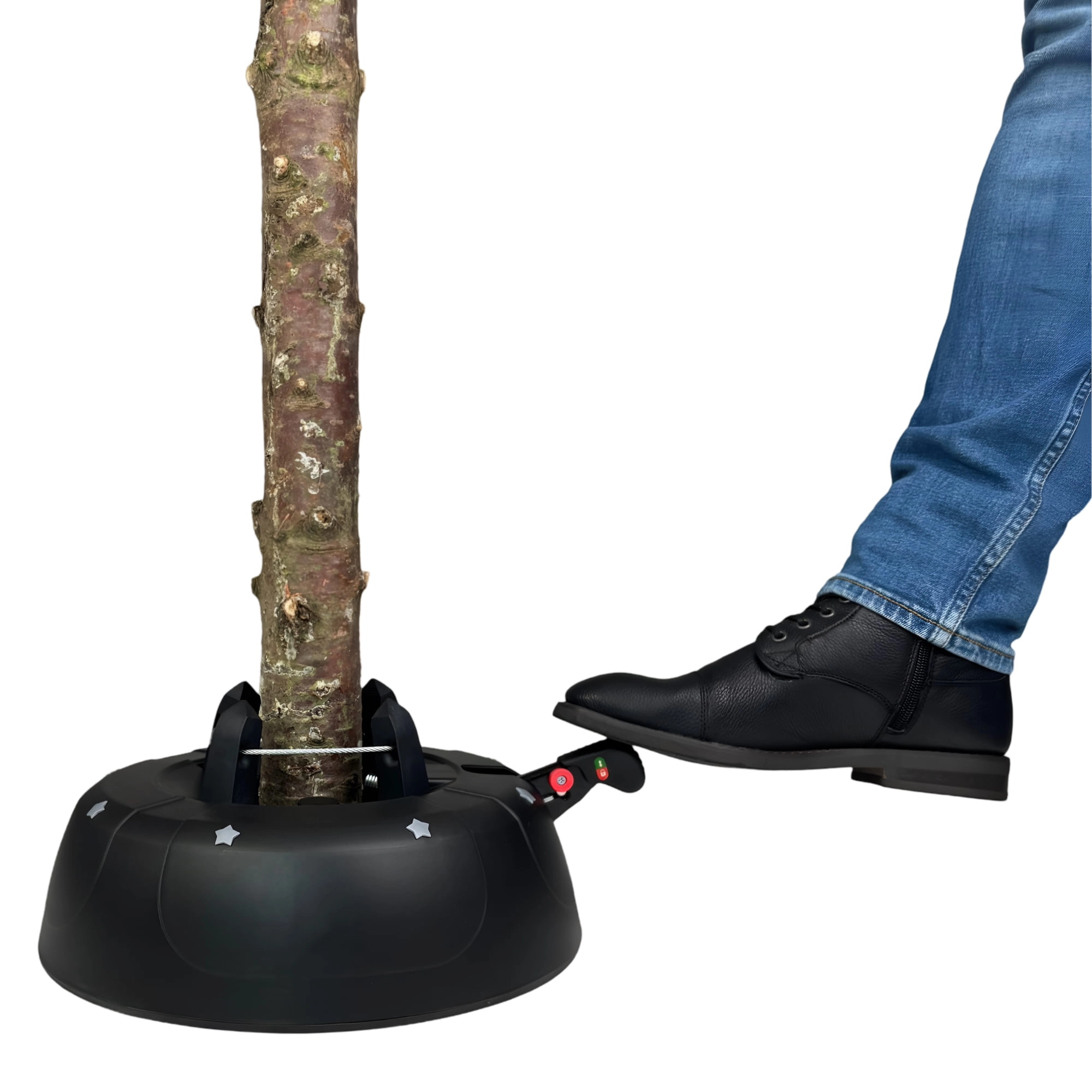 Nyd bekymringsfrie højtider med en fod, der tænker på det hele – fra hurtig fastgørelse af træet til langvarig friskhed. Det patenterede system med fire automatiske stålkroge griber stammen på få sekunder, mens den brede og tunge base giver stabilitet hele juleperioden.