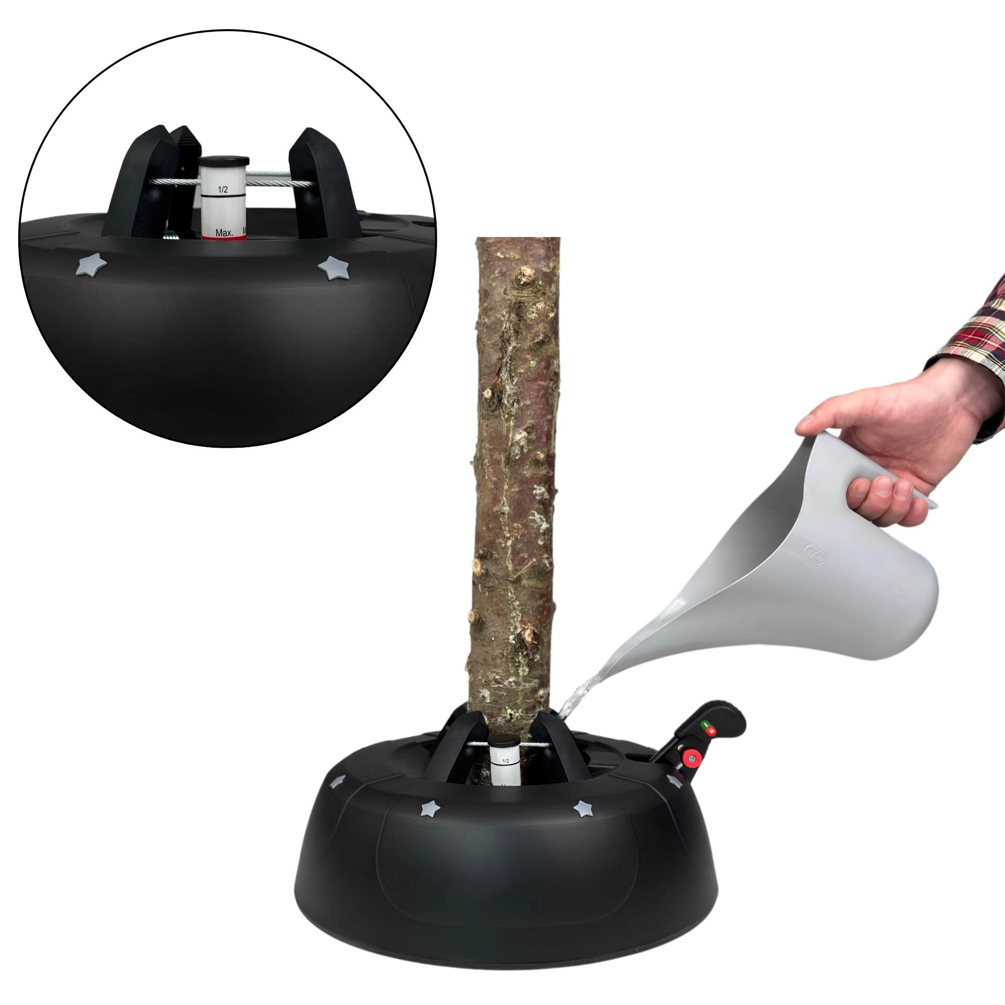 Hold træet friskt i længere tid takket være vandtanken på 2 liter. Niveauindikatoren gør det let at efterfylde og mindsker nålefald.