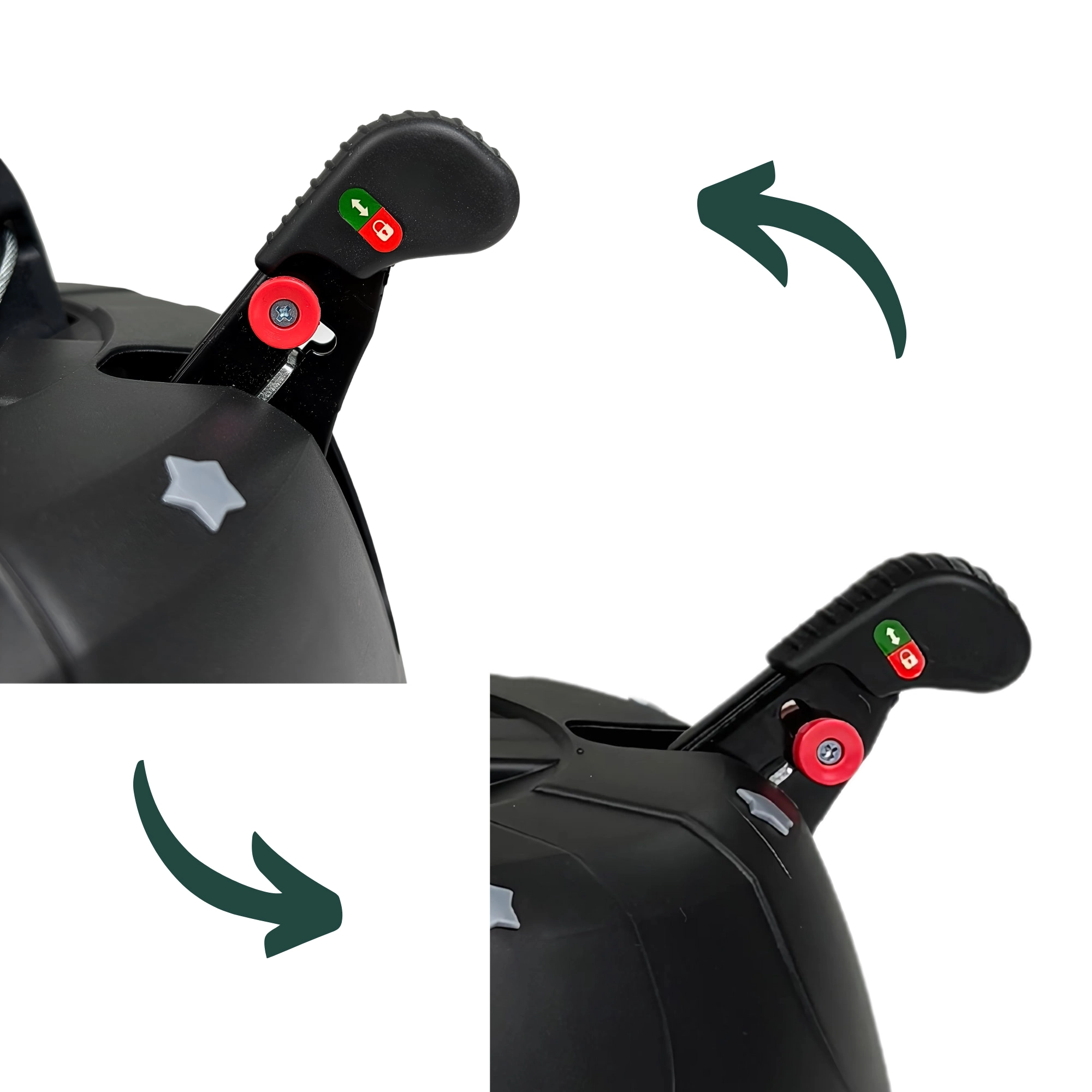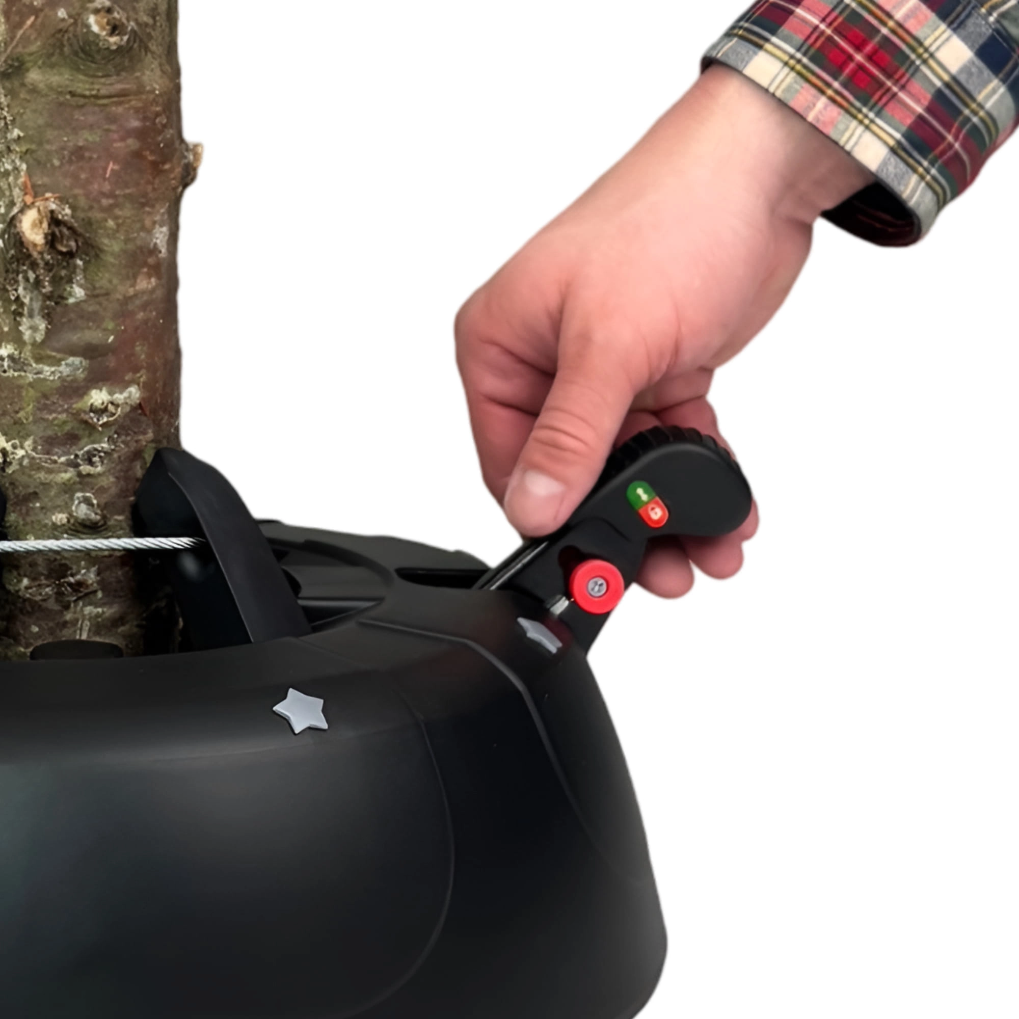 Det patenterede system med fire kroge af robust stål spænder hurtigt og sikkert om stammen med en diameter på 3–11 cm – uden besværlig skruning.