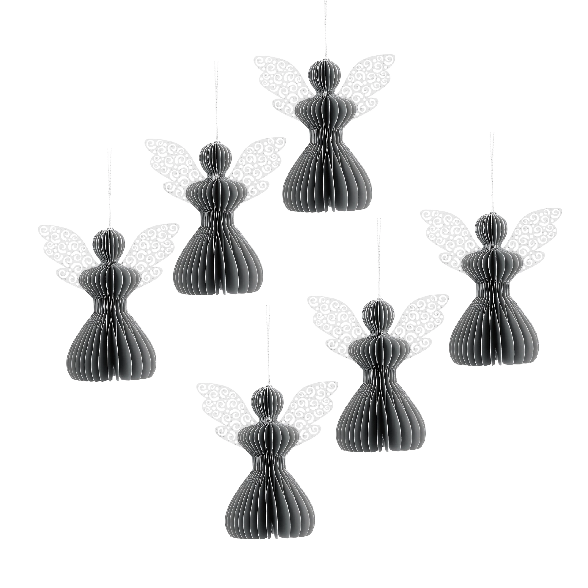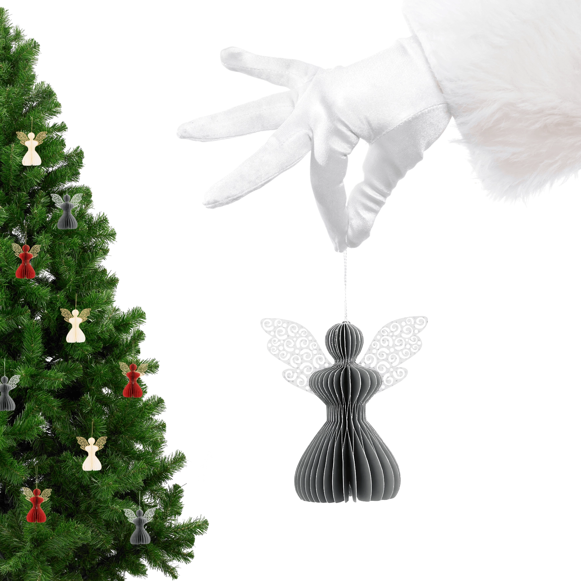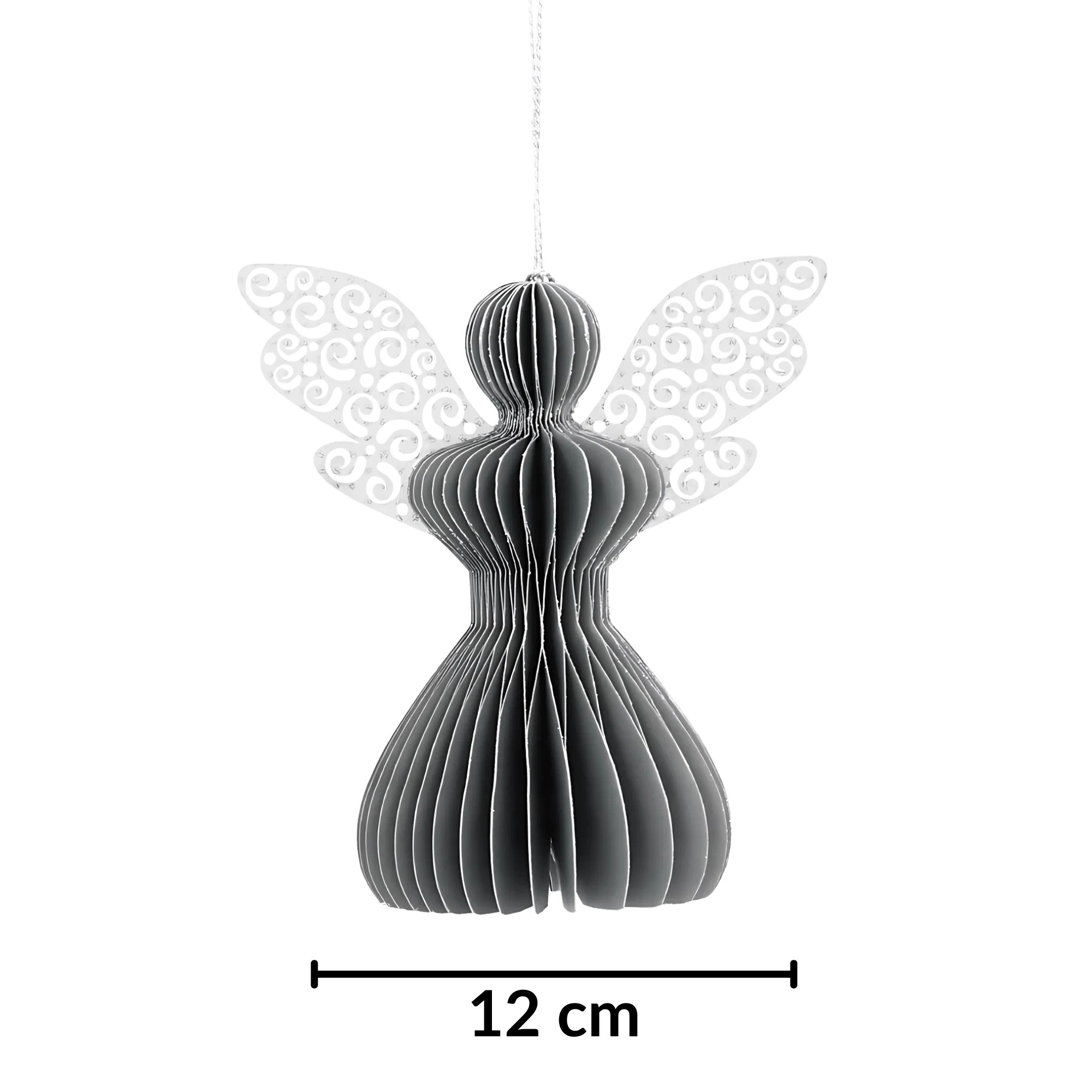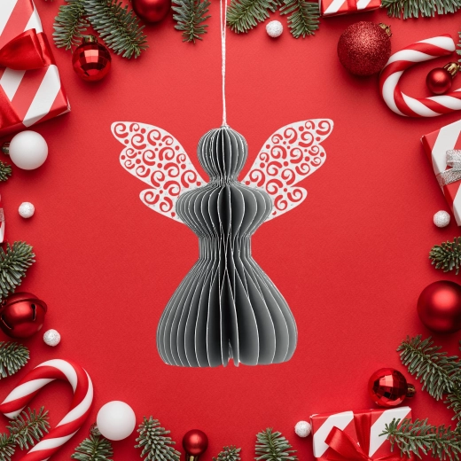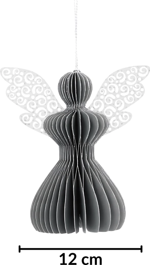 Den stilfulde grå engel med harmonikaeffekt i 3D tilfører dit interiør diskret elegance og en hyggelig julestemning. Den neutrale grå nuance kombineres nemt med gyldne, hvide og naturlige accessories og understøtter både et moderne og klassisk udtryk.