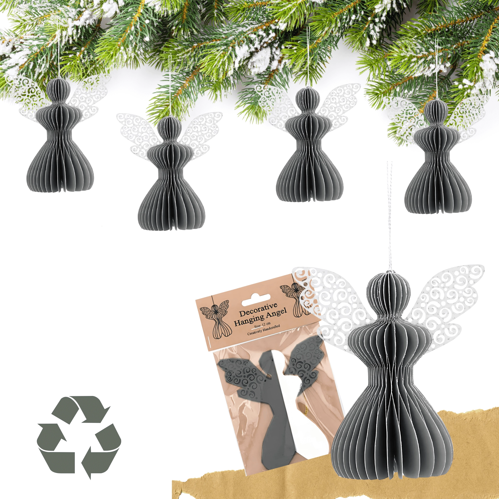 Englekroppen i harmonikastil skaber et luftigt volumen og tager sig flot ud på grene såvel som ophængt. Nem ophængning med snor.