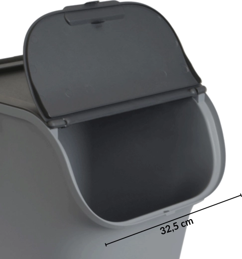 Det vippende låg med en bred åbning sikrer nem aflevering af affald og begrænser lugtudslip. Ideelt til daglig brug i køkkenet.