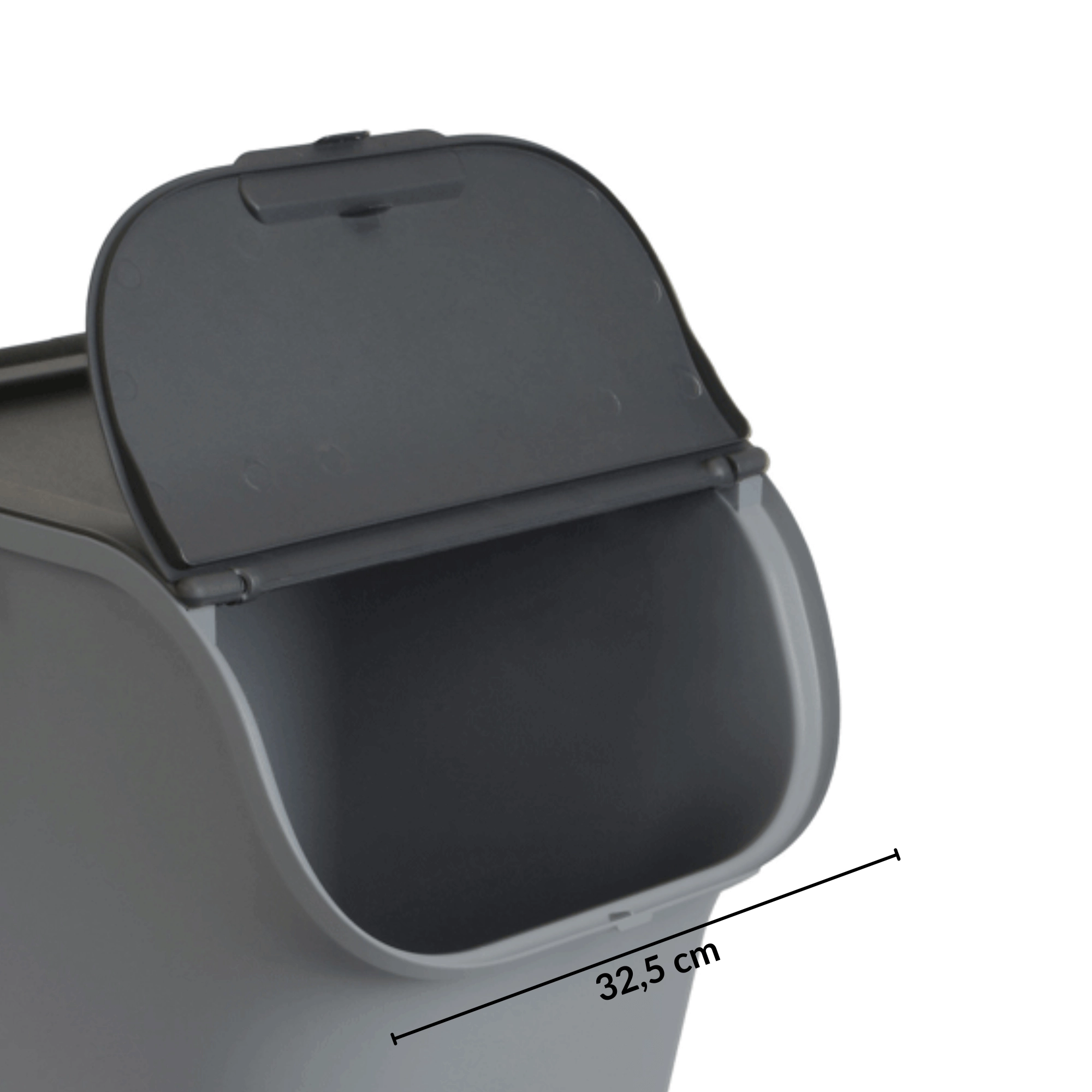 Maksimér pladsen og gør sorteringen enklere. Den rektangulære form gør det muligt at placere spandene side om side eller oven på hinanden, så du får en overskuelig sorteringsstation selv i et lille køkken eller under vasken. Den brede åbning i låget fremskynder afleveringen uden at skulle fjerne låget, mens det integrerede bundgreb gør transport og tømning lettere.