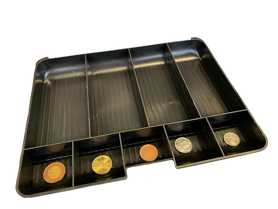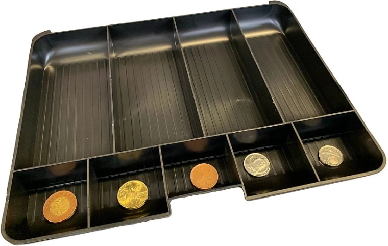 Den indvendige møntorganizer holder småmønter pænt adskilt, mens der under den er plads til sedler og dokumenter.
