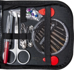 Indeholder de vigtigste udstyr som målebånd, saks, nåle og knappenåle, ideelt til hurtige reparationer og kreative projekter.