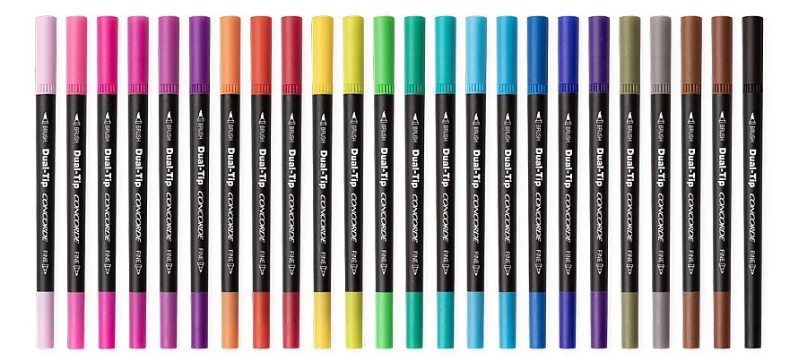 Sættet CONCORDE Dual‑Tip kombinerer finelinerens præcision og penselspidsens kreative muligheder. Takket være to spidsstørrelser klarer du fine konturer, lettering, skitsering og udfyldning af større flader. 24 nøje udvalgte nuancer giver en bred palet til illustrationer, noter og bullet journal.