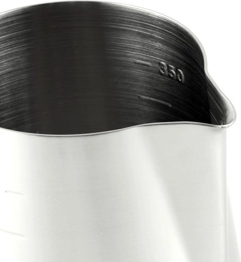 Praktisk stålkande til opskumning af mælk. Det komfortable håndtag og hældetud gør det nemt at hælde. Praktisk måleskala med indvendig graduering for hver 50 ml. Den robuste stålkonstruktion sikrer lang og problemfri brug.