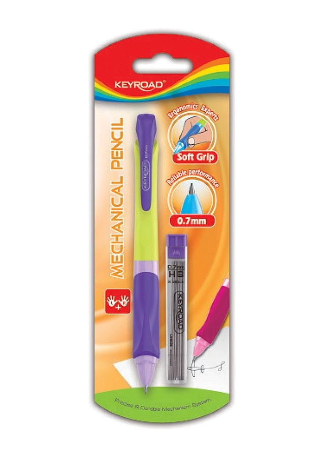 Stilfuld mekanisk blyant med blødt greb for behagelig skrivning, pålidelig mekanisme og spidsbredde 0,7 mm. I pakken finder du også et etui med ekstra stifter. Velegnet til både højre- og venstrehåndede, leveres i lilla farve.