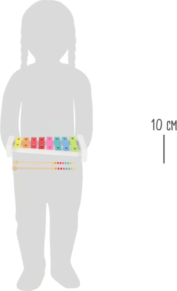 At spille på xylofon udvikler hørelse, rytme og hånd–øje-koordination. De medfølgende nodesider med farvekoder (fx "Old MacDonald") hjælper børn med at mestre de første melodier allerede fra 18 måneder.