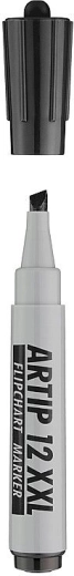 Professionel flipchartmarker med ekstra blækvolumen (+50 %) og skrå spids for variabel stregbredde 1–4 mm. Ideel til præsentationer, kurser og kontor – dyb sort farve, jævn skrivning og fremragende læsbarhed på flipchartpapir.