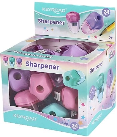 Keyroad Star-blyantspidseren er et ideelt valg til skole, kontor og hjem. Takket være den integrerede affaldsbeholder holder du arbejdsområdet rent, og spidsningen er hurtig og sikker. Den ergonomiske form sikrer et behageligt greb, selv ved længere tids brug, og de kompakte mål passer uden problemer i ethvert penalhus.