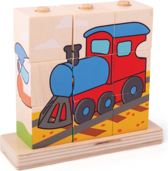 Dette træpuslespil giver børn sjove og lærerige øjeblikke. Med forskellige transporttemaer underholdes børnene, mens de samtidig udvikler vigtige færdigheder til problemløsning.