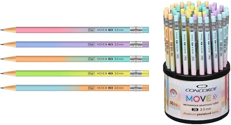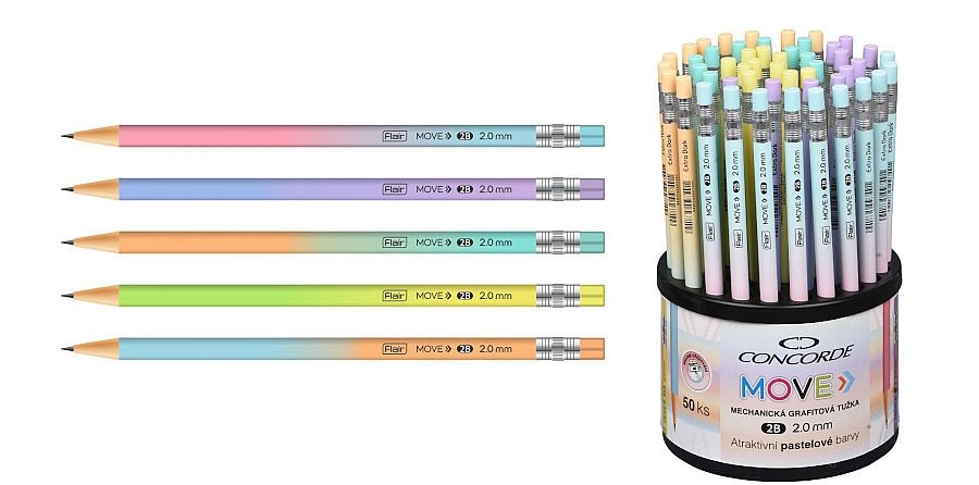 Leder du efter en pålidelig mekanisk blyant til skitsering, skrivning og tekniske tegninger? CONCORDE Move kombinerer komfort og præcision. Takket være 2,0 mm spids og den bløde 2B-min opnår du en mættet, jævn streg uden unødigt tryk. Den træfri konstruktion gør det let at spidse spidsen med spidseren ProSharp 2,0 mm.