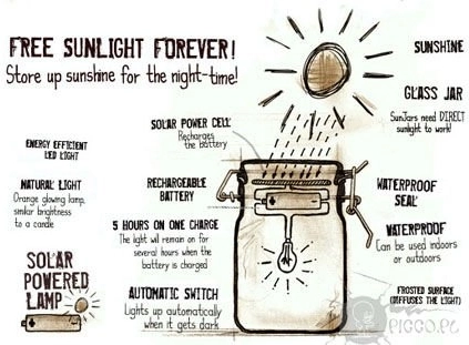 Ved simpelthen at placere den på et solrigt sted i løbet af dagen, oplades lampen fuldt ud og giver behagelig belysning efter mørkets frembrud. Skab en hyggelig atmosfære med et design, der minder om en traditionel syltekrukke. Takket være dens kompakte form er denne lampe nemt bærbar og også velegnet som en original gave.