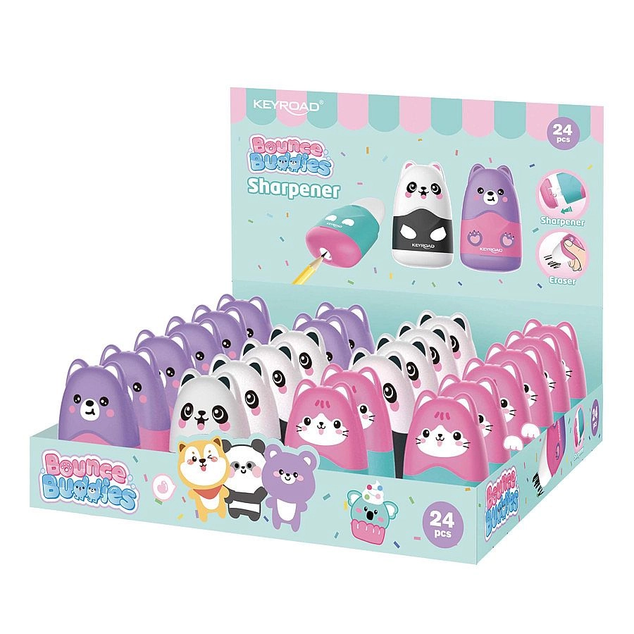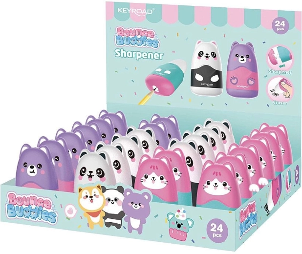 Det søde spidser med dyremotiver i pastelfarver vil glæde både børn og skoleelever. Takket være den integrerede affaldsbeholder forbliver penalhus og skrivebord rene, mens det praktiske viskelæder med beskyttelseslåg altid er lige ved hånden til hurtige rettelser.