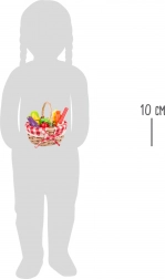 Dette kvalitetssæt indeholder en fletkurv med ternet stof og træstykker af frugt og grønt (jordbær, gulerod, aubergine, majskolbe, æble, banan m.fl.). Delene er forbundet med velcro, så børnene trygt kan “skære” dem over med den trækniv og samle dem igen. Perfekt som tilbehør til legekøkken og butiksleg.