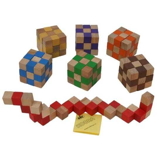 Udfordr din hjerne med denne træ-hjernetræner i form af en kube, som udvikler strategisk og logisk tænkning. Med otte farvevarianter og forskellige sværhedsgrader fra den letteste til den mest avancerede giver dette spil et bredt udvalg af udfordringer. Jo mørkere farve, desto sværere puslespil – ideelt til alle aldersgrupper.