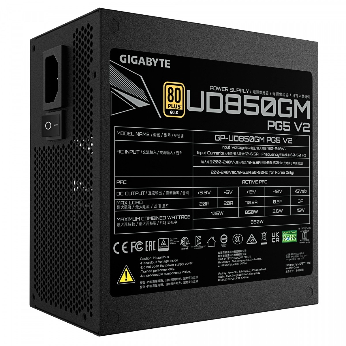Kraftig modulær strømforsyning med effekt på 850 W og 80+ Gold-certificering opfylder ATX 3.1-standarden og er klar til næste generation af GPU’er. Den native 16-pin-kabel leverer op til 600 W til PCIe 5.1-grafikkort, for eksempel serien GeForce RTX 50 og nyere. Strømforsyningen håndterer op til 3× spidsbelastning på GPU og 2× systemspidser og bevarer 70 % effektivitet ved lav belastning.