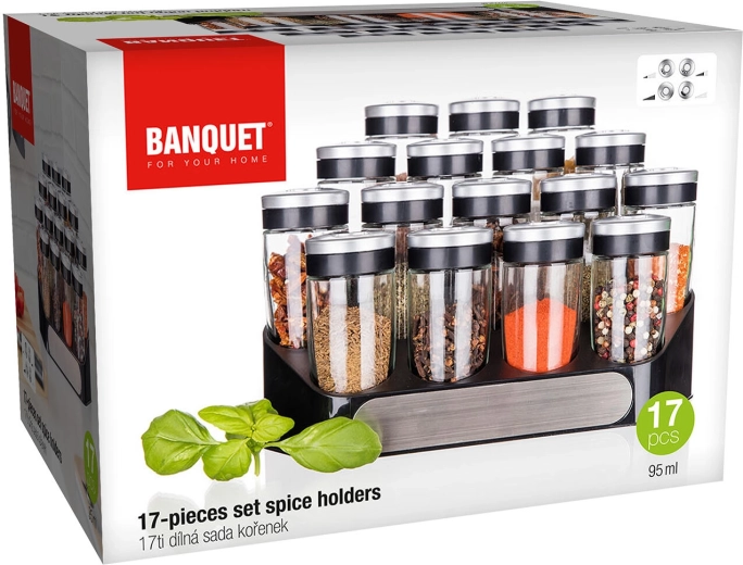 Hold køkkenet organiseret og stilfuldt med ALTIMA krydderisæt – 16 glaskrydderiglas (95 ml) på et praktisk etage-stativ i ABS-plast. Hvert glas har et låg med 3 justerbare åbninger (fin, grov, universel) for præcis dosering af krydderier. Gennemsigtigt glas for hurtig identifikation, pladsbesparende og nem vedligeholdelse – glasdels kan vaskes i opvaskemaskinen.