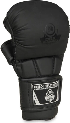 Professionelle MMA-handsker DBX Bushido Black Master til krævende træning og sparring tilbyder maksimal beskyttelse, anatomisk formet snit, kraftig stødabsorbering og fast håndledsstabilisering takket være en bred manchet. Den holdbare konstruktion med forstærket polyuretan og special PUR-skum sikrer lang levetid og høj komfort.