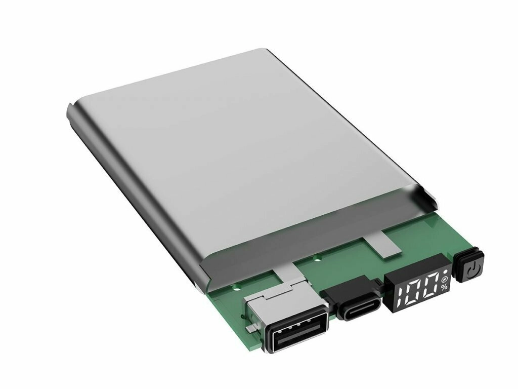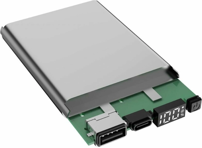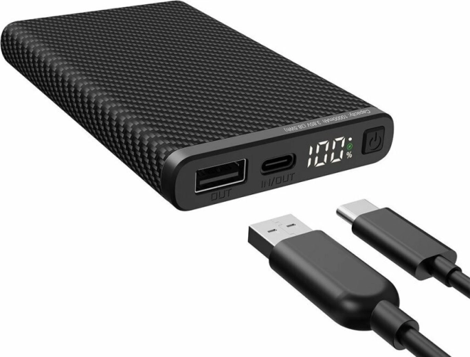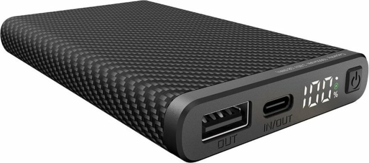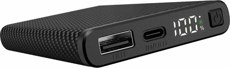 Praktisk portvalg omfatter USB‑A‑udgang og USB‑C‑port med in/out-funktion til opladning af både enheder og selve powerbanken. Universel strømforsyning fra enhver USB‑C 5 V‑kilde (oplader, bærbar pc m.m.) giver maksimal fleksibilitet på farten.