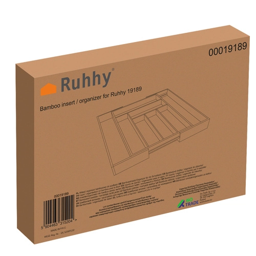 Hold orden i køkkenskuffen med den udtrækkelige bambusorganisator RUHHY. Naturlig bambus er holdbar, tørrer hurtigt og absorberer færre bakterier. Den justerbare bredde giver 6 til 8 rum til skeer, gafler, knive og småt bestik. Det elegante, naturlige udseende passer i ethvert køkken og sikrer overskuelig og hygiejnisk opbevaring af tilbehør.