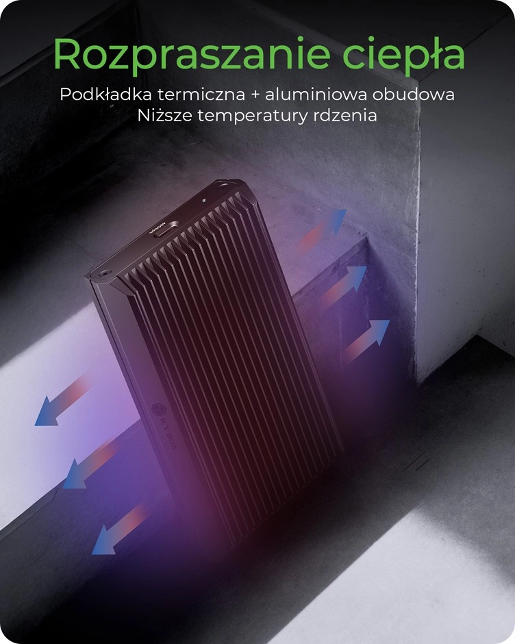 Det robuste aluminiumshus beskytter effektivt drevet mod stød og slid og leder sammen med den integrerede termopude varmen direkte ud i chassiset. Dermed forbliver SSD’en kølig uden ydelsesnedgang ved længerevarende belastning. Installationen er helt uden værktøj – skub ud, indsæt SSD’en, læg puden på og luk.