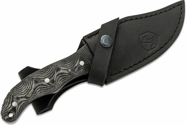Full-tang-konstruktionen sikrer høj styrke og lang levetid. Det formede Micarta-skæfte i grå ligger fremragende i hånden – også med handsker – og giver et sikkert greb i både tørt og vådt vejr. Læderskeden muliggør komfortabel og sikker bæring i bæltet.