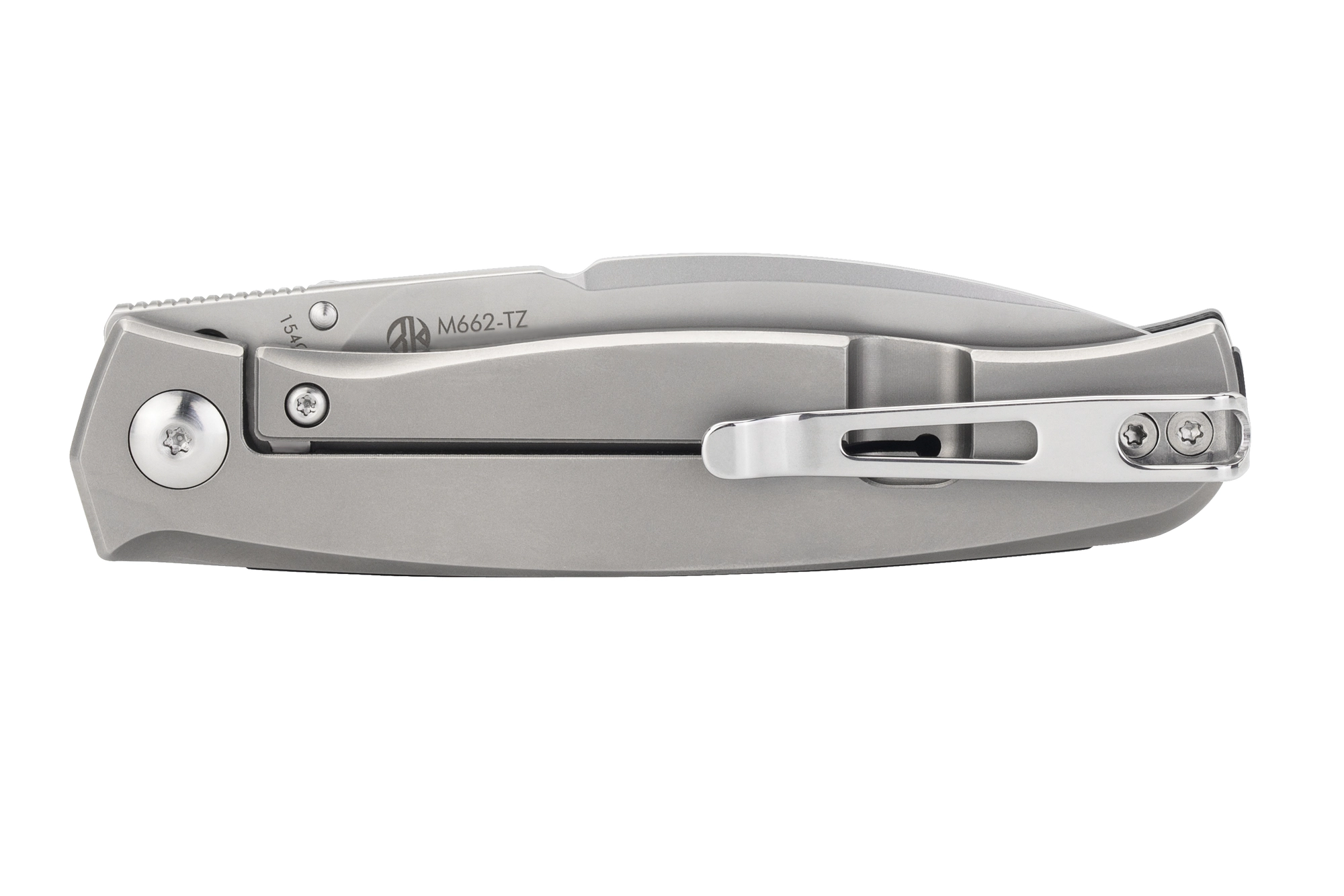RUike M662-TZ er en eksklusiv titaniumvariant af den populære model P662-B, designet som en pålidelig EDC-makker. Takket være premiumstål 154CM med kryogen behandling får du høj skæreeggholdbarhed, stabil ydeevne og nem slibning. Den glatte klinge med Bead Blasted-overflade virker diskret og elegant og modstår samtidig slid godt.