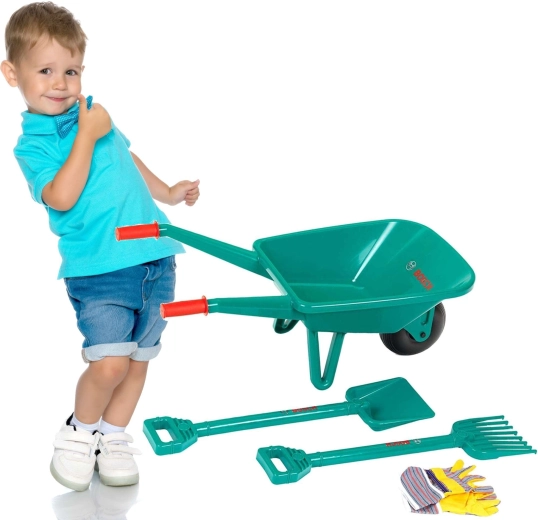 Dette realistiske BOSCH havesæt til børn efterligner rigtigt værktøj og motiverer små hjælpere til aktiv leg udendørs. Den lette konstruktion, komfortable greb og den stabile trillebør med ét hjul gør det nemt at skubbe og manøvrere.